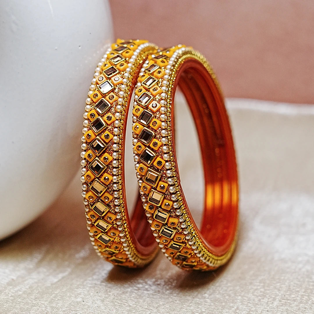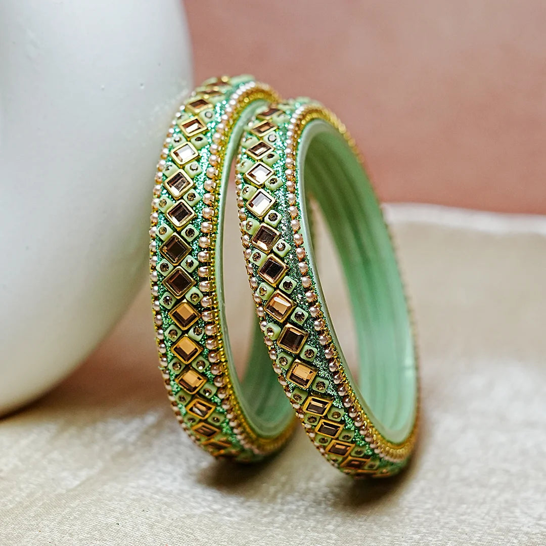 Premium Handcrafted Kundan Work Glass Kada For Women (Pack of 2)
