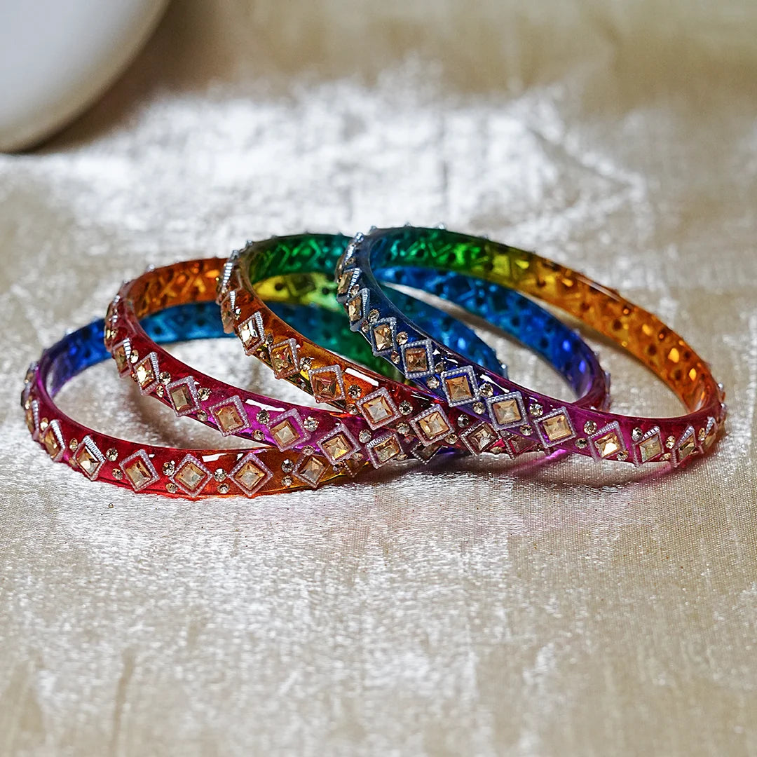 Designer Glass Kada Bangle for Women and Girls (Pack of 4)