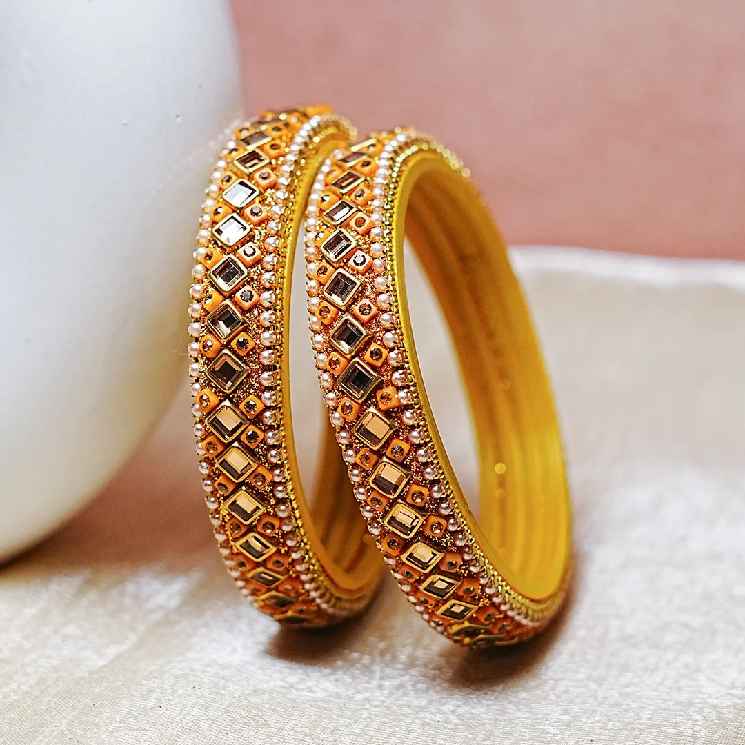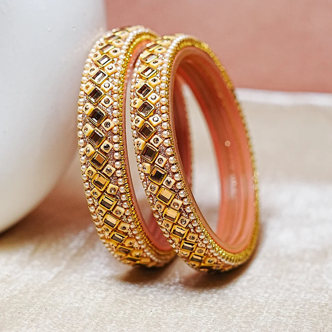 Gold Finish Glass Kada with Pearl & Stone Work For Women (Pack of 2)