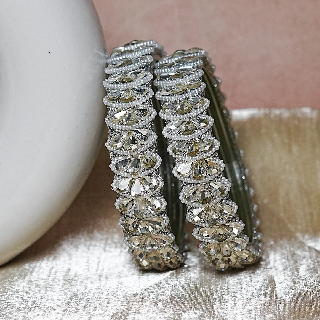 Women’s Glass Kada Bangles with Pearl & Stone Work (Pack of 2)