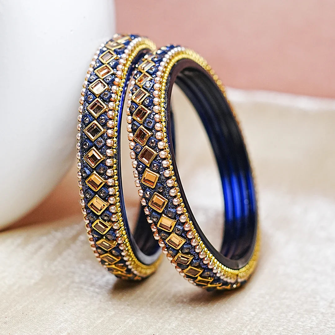 Stylish Designer Glass Kada Bangles for Women (Set of 2)