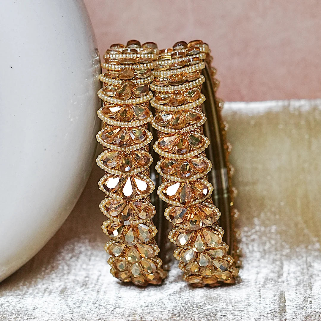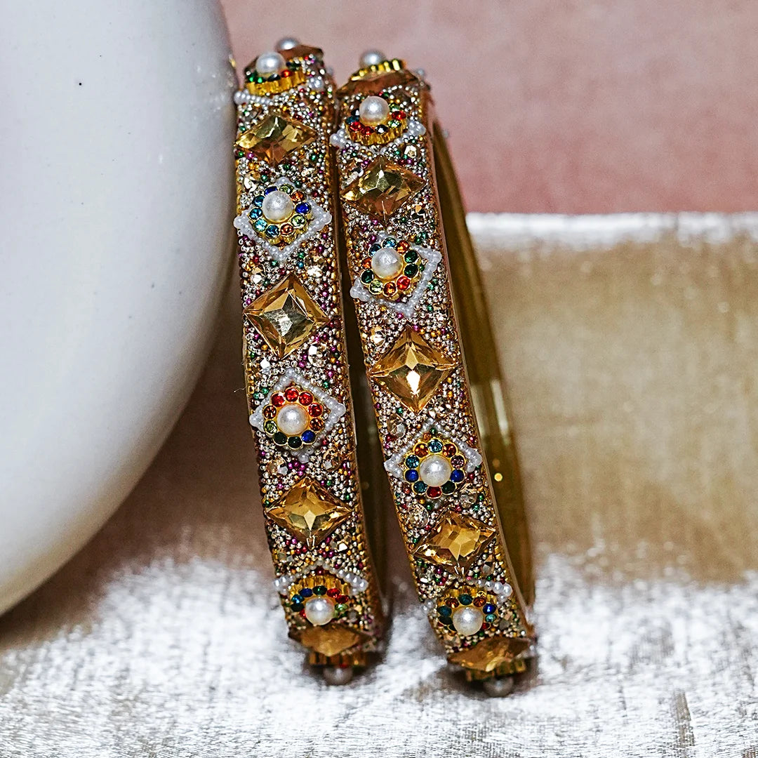 Gold Finish Glass Kada with Pearl & Stone Work For Women (Pack of 2)