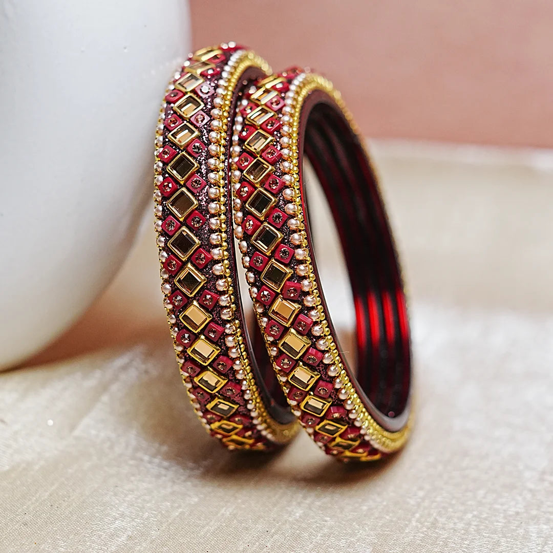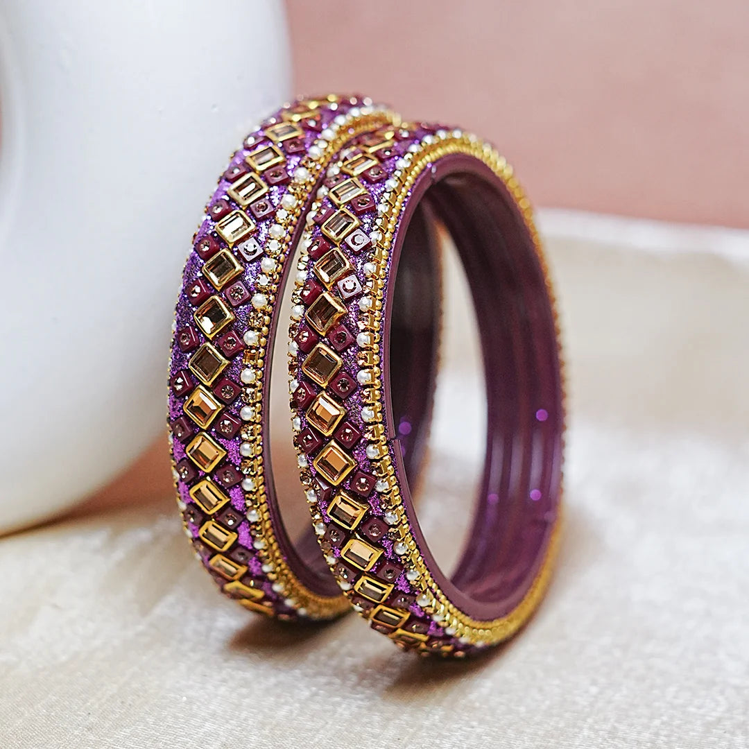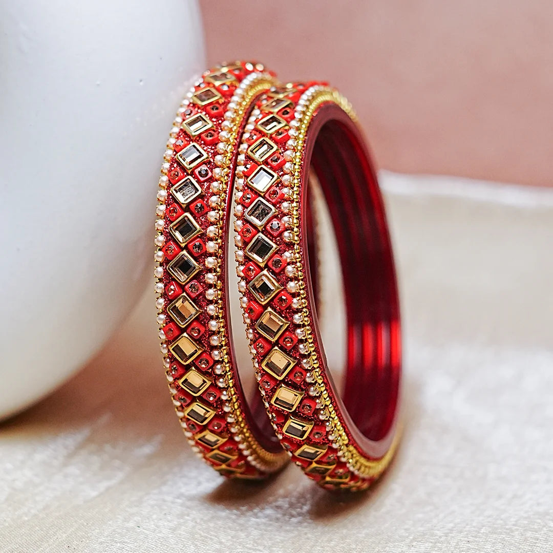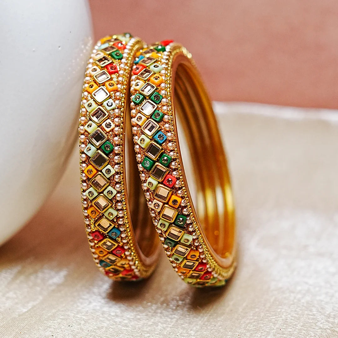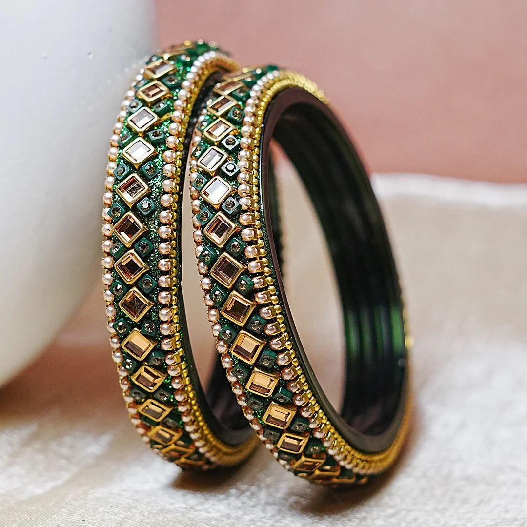 Premium Handcrafted Kundan Work Glass Kada For Women (Pack of 2)