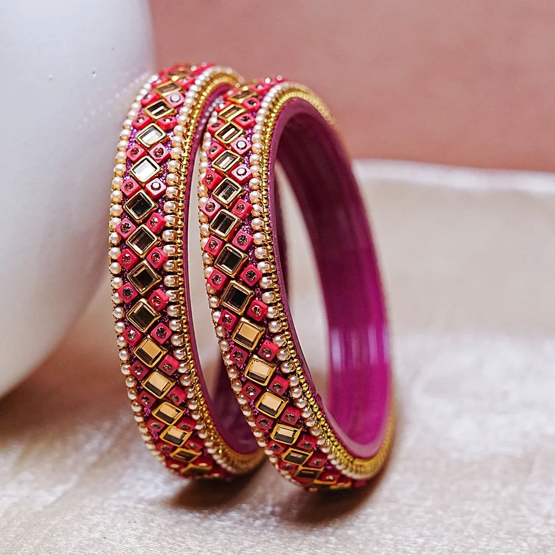 Women’s Glass Kada Bangles with Pearl & Stone Work (Pack of 2)