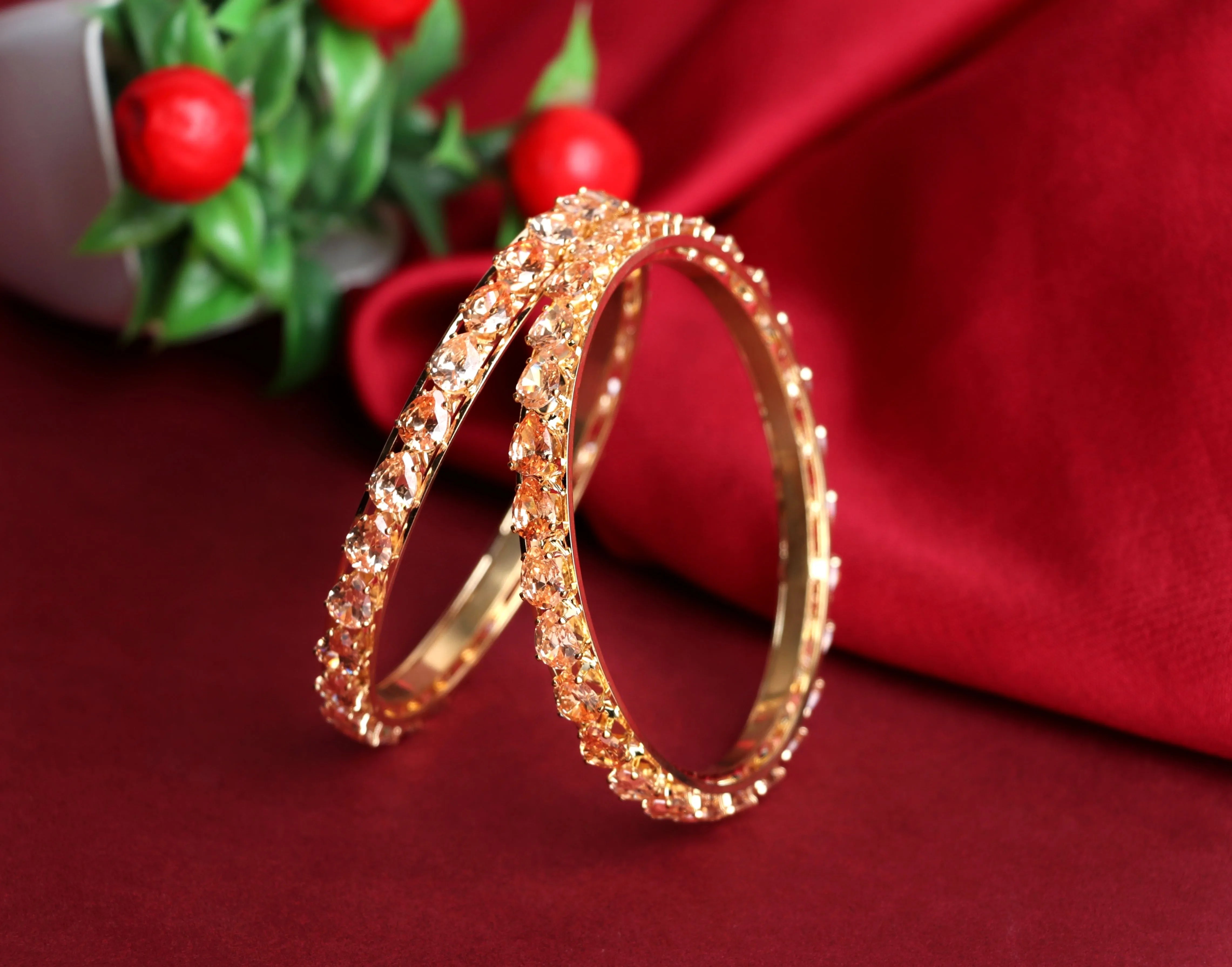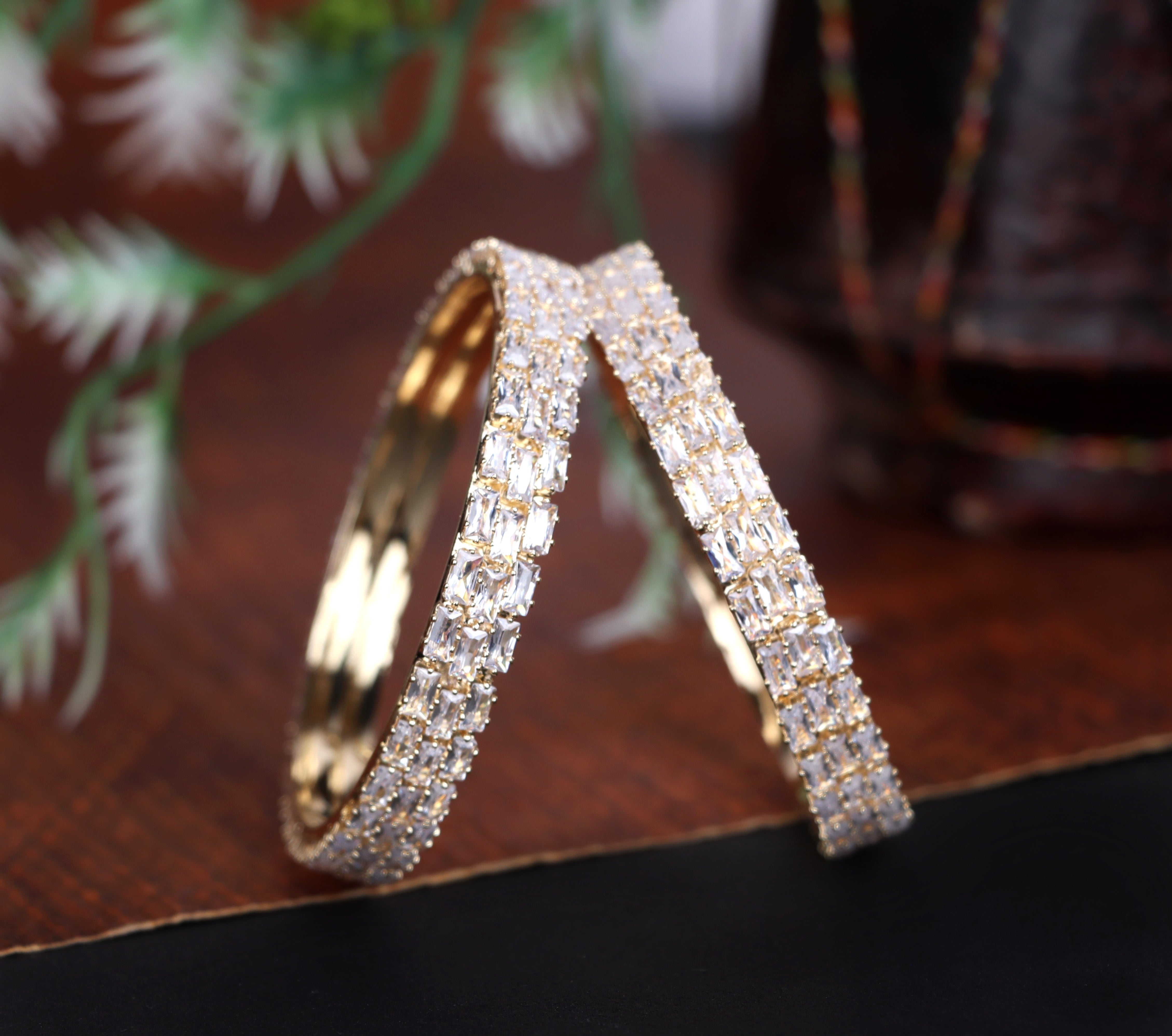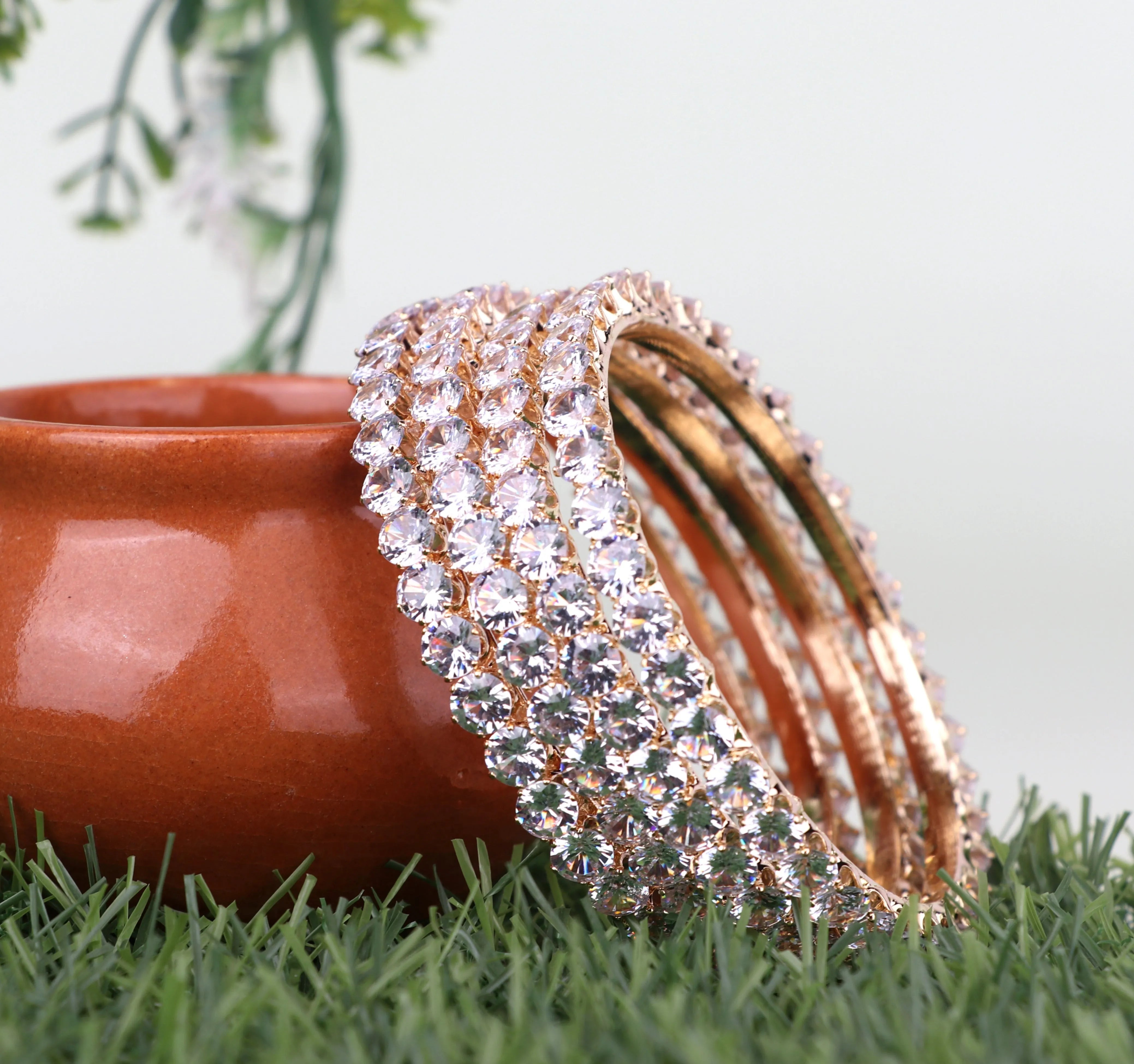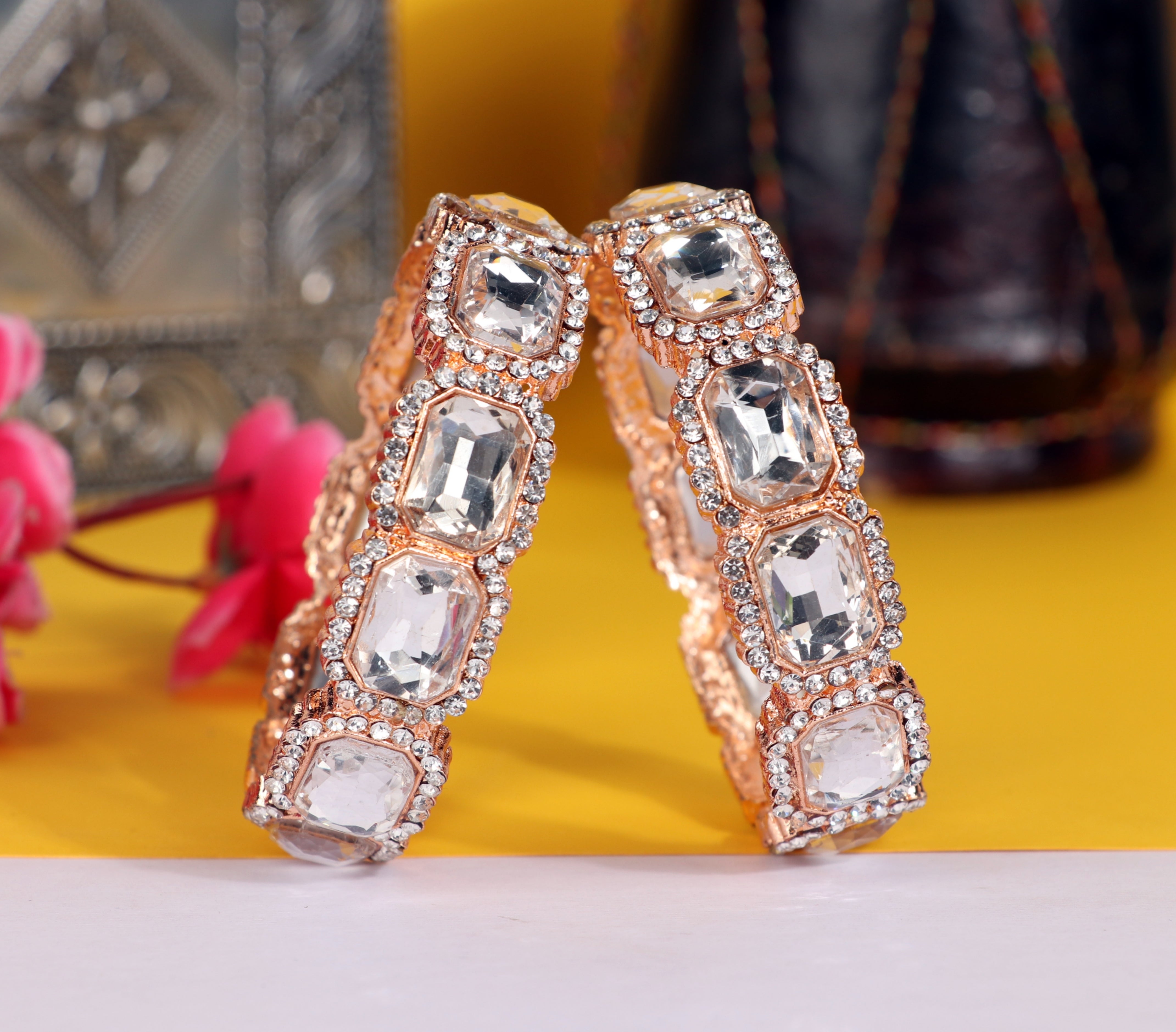 American Diamond Kada for Women, Premium Rose Gold Plated AD Studded Kada Set for Girls