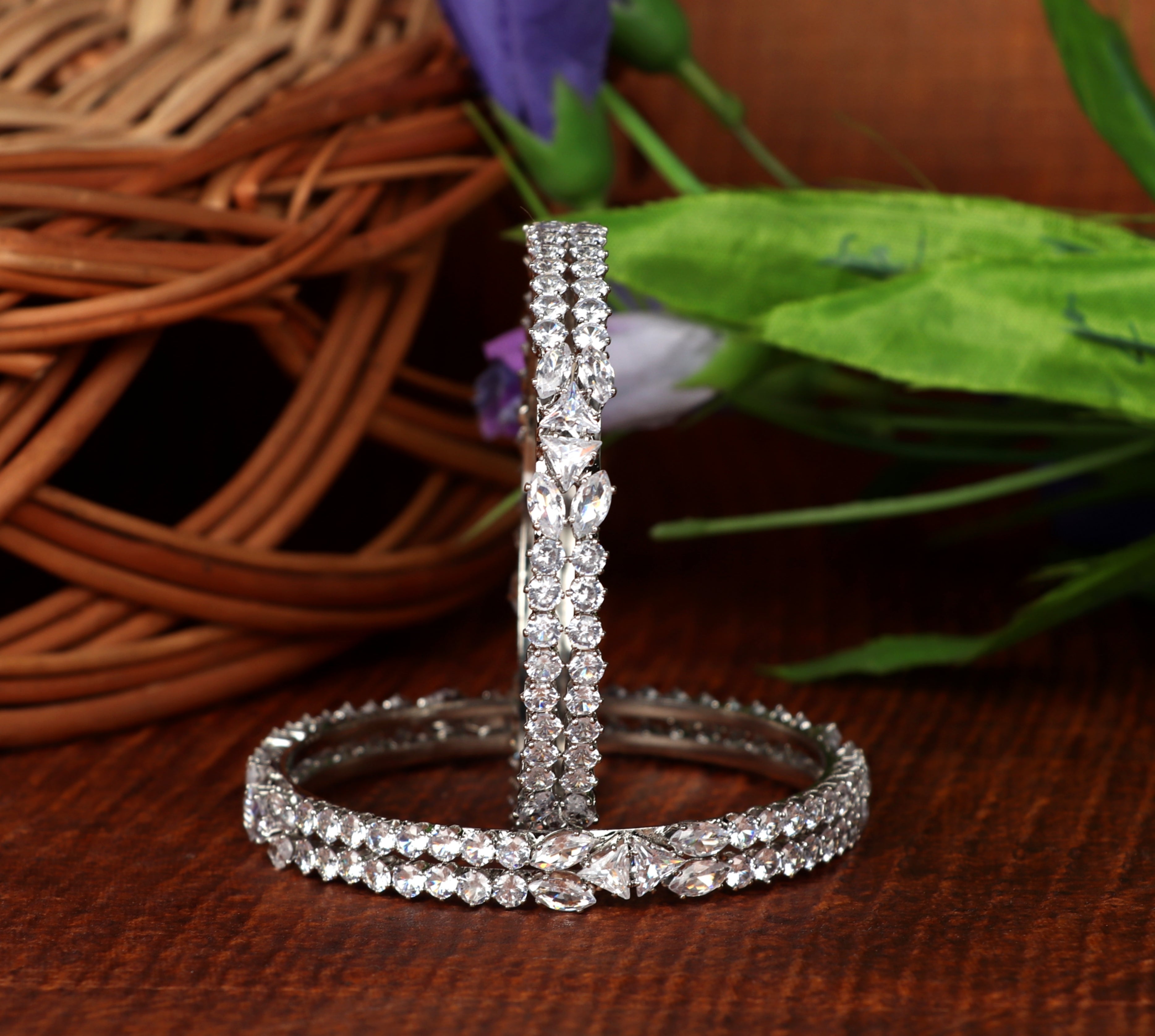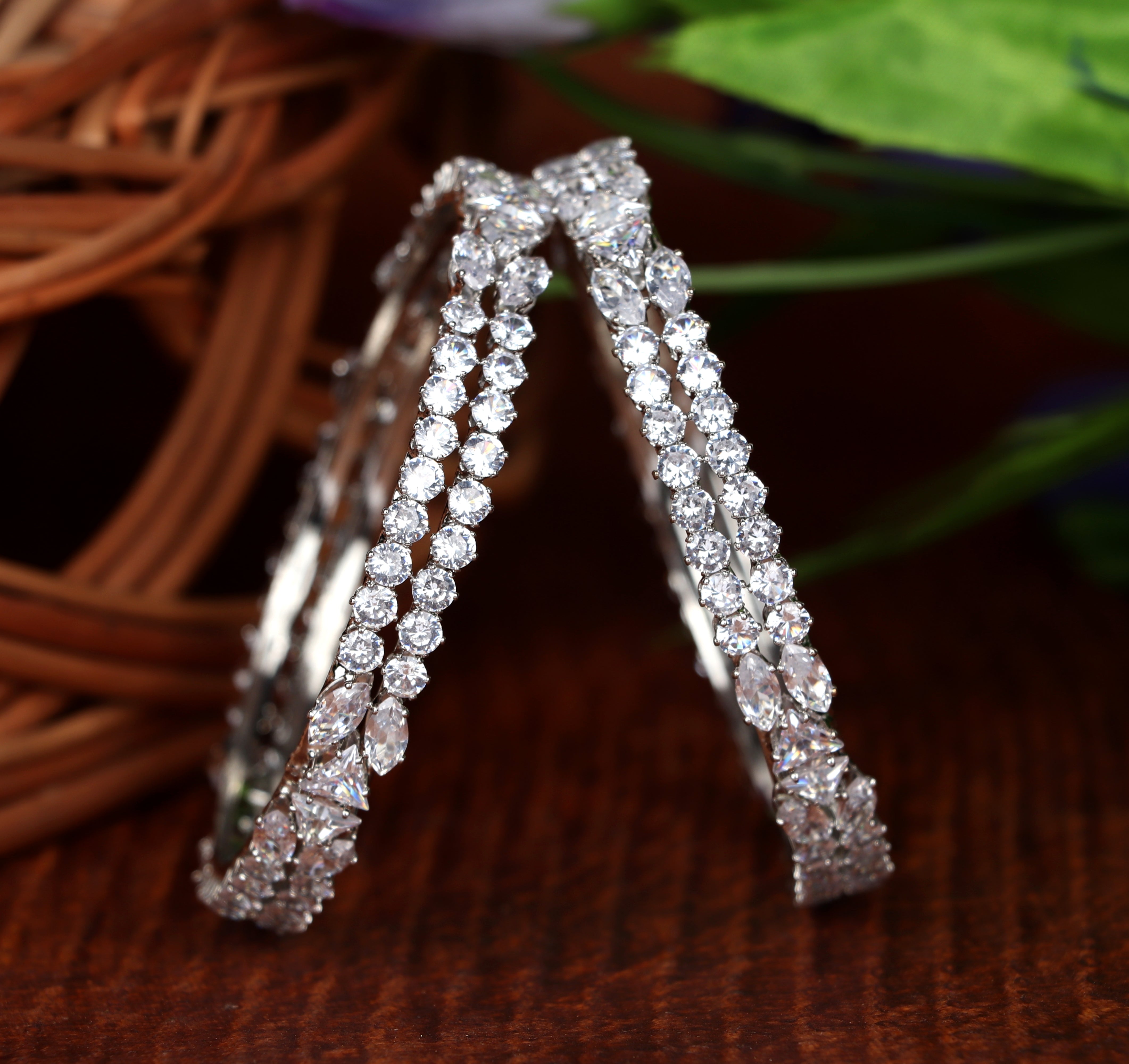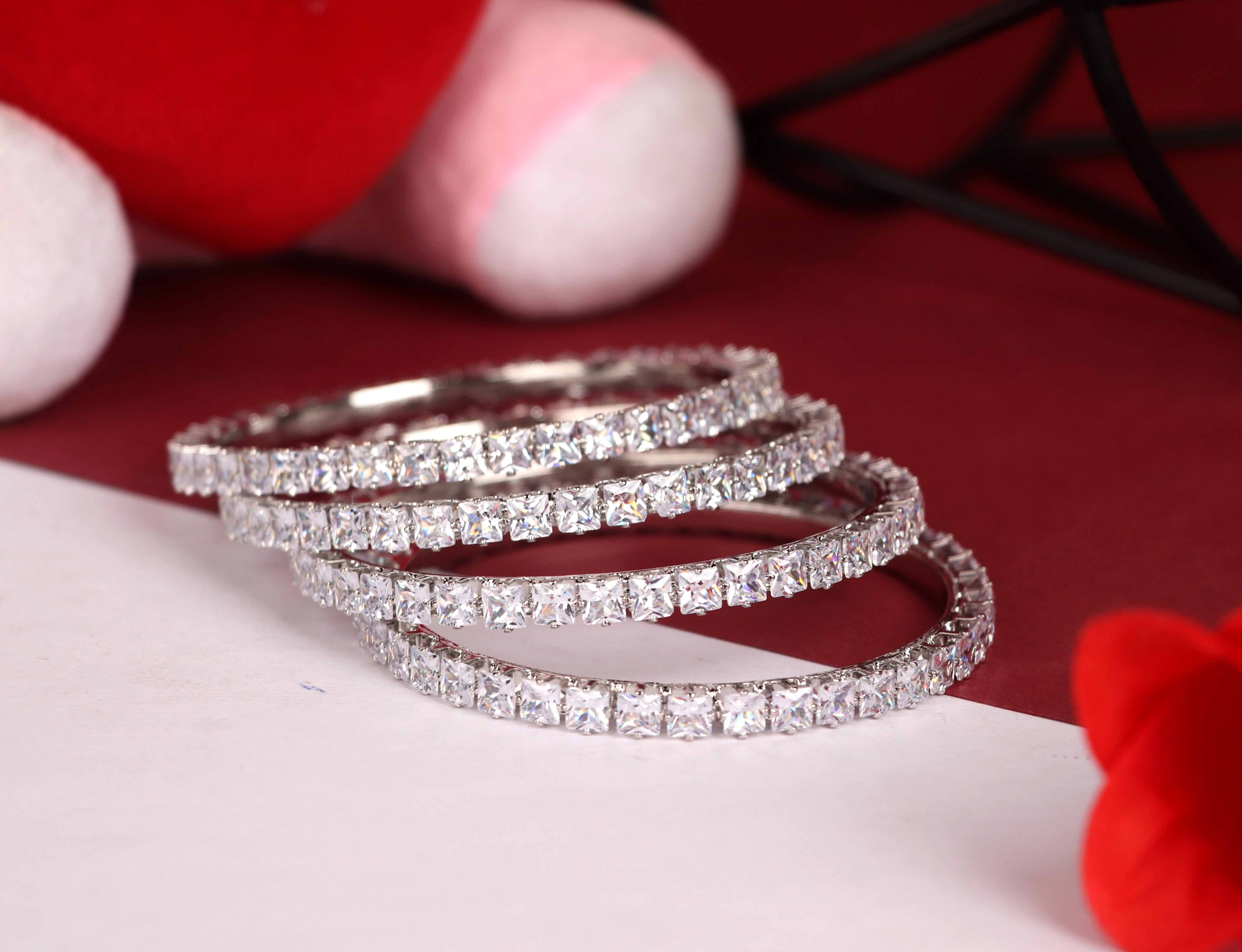 Stylish Silver-Plated AD Stone Studded Traditional Kada | American Diamond Kada for Women & Girls