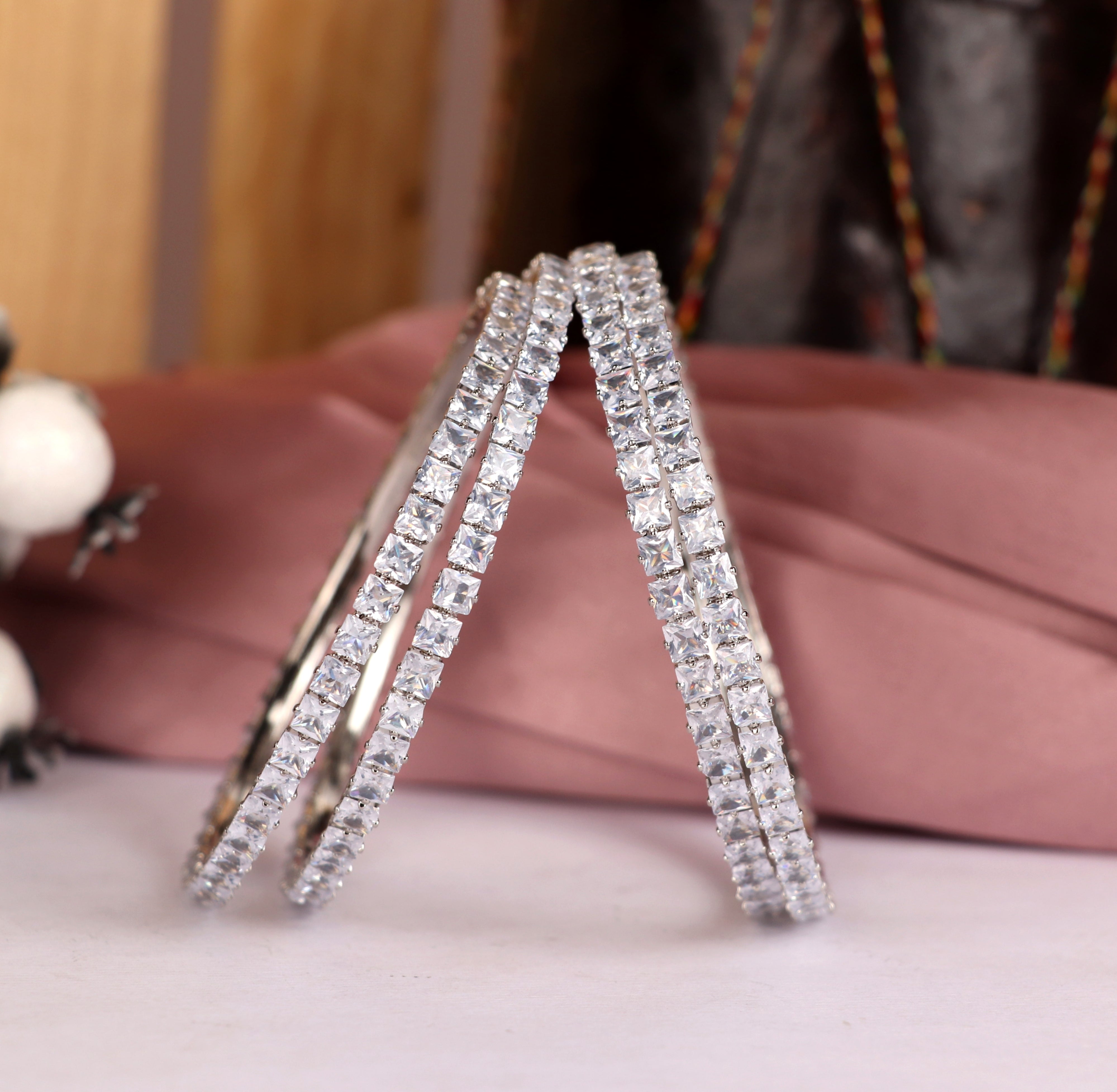American Diamond Kada for Women & Girls | Silver-Plated AD Stone Studded Traditional Kada