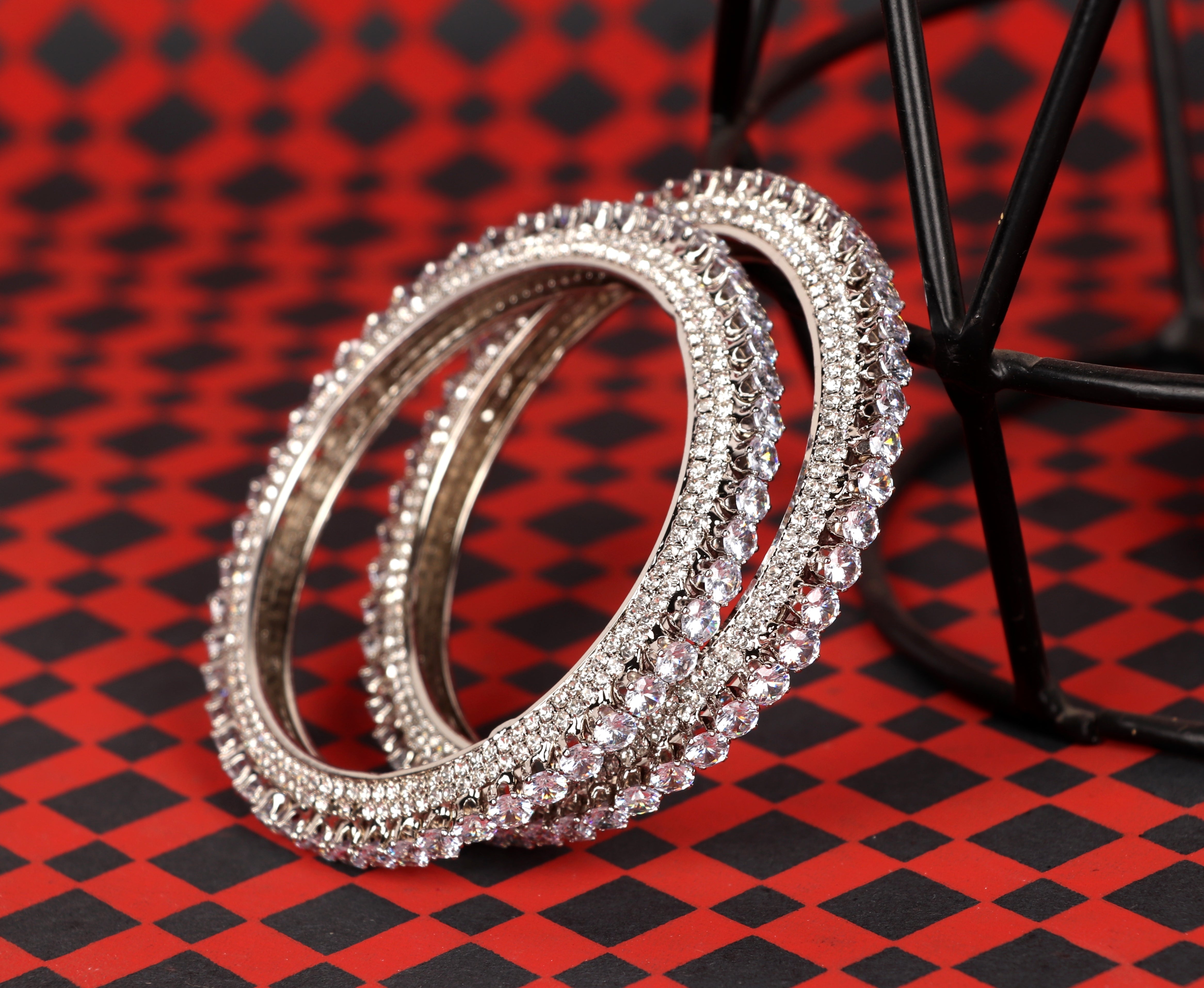 Premium Quality Silver Plated AD Studded Metal Kada For Women & Girls