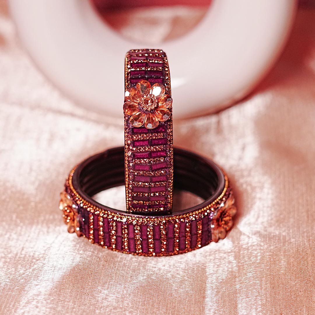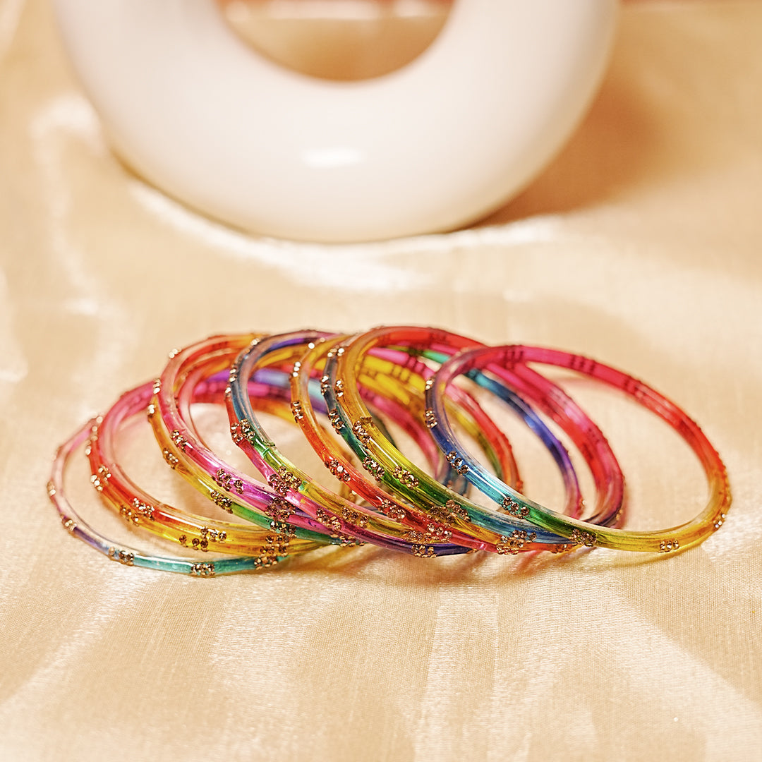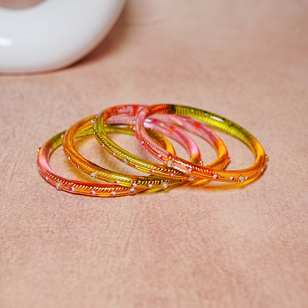Traditional 'HotStar' Flower Design Glass Kada for Women & Girls (Pack of 4 kada)