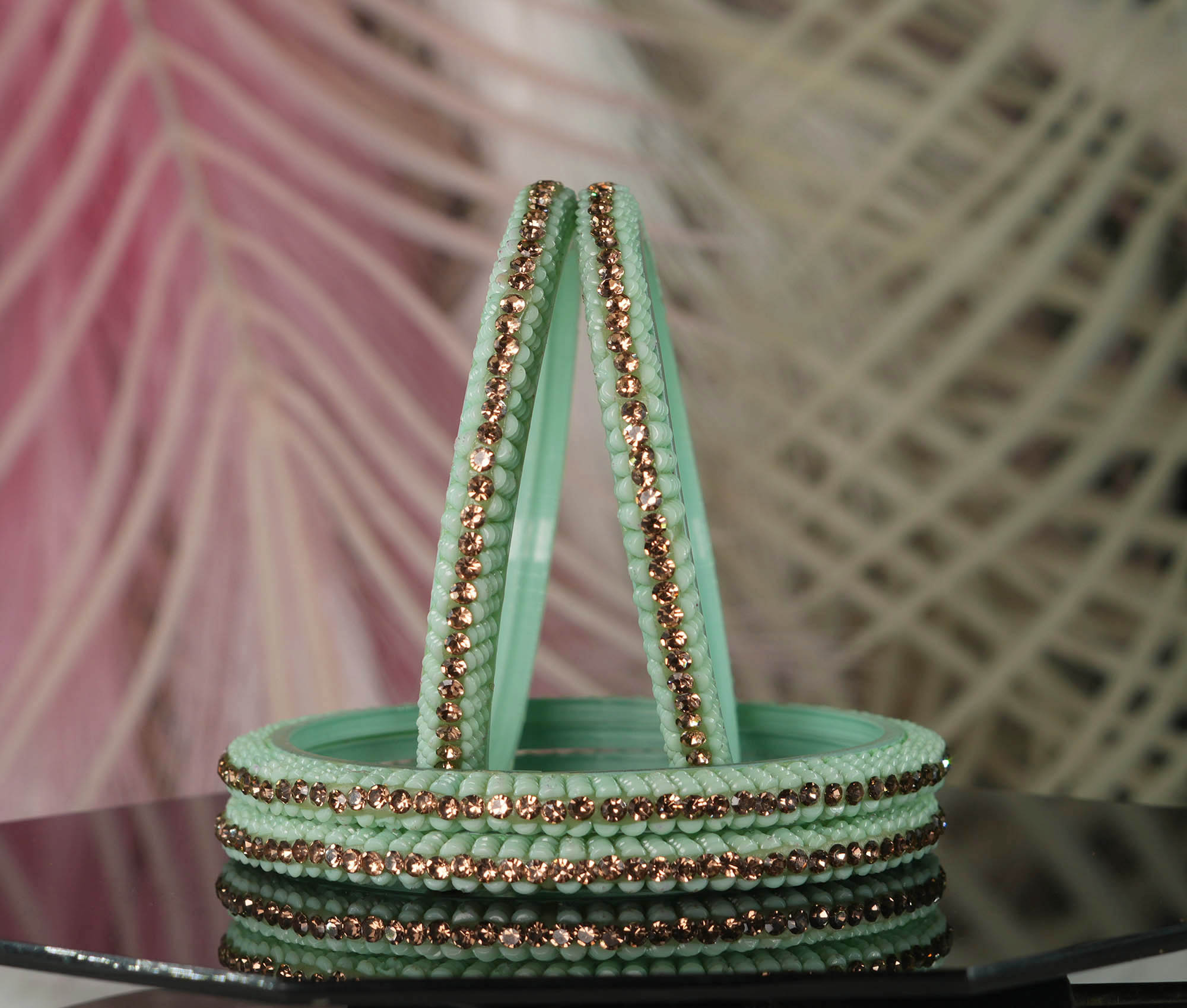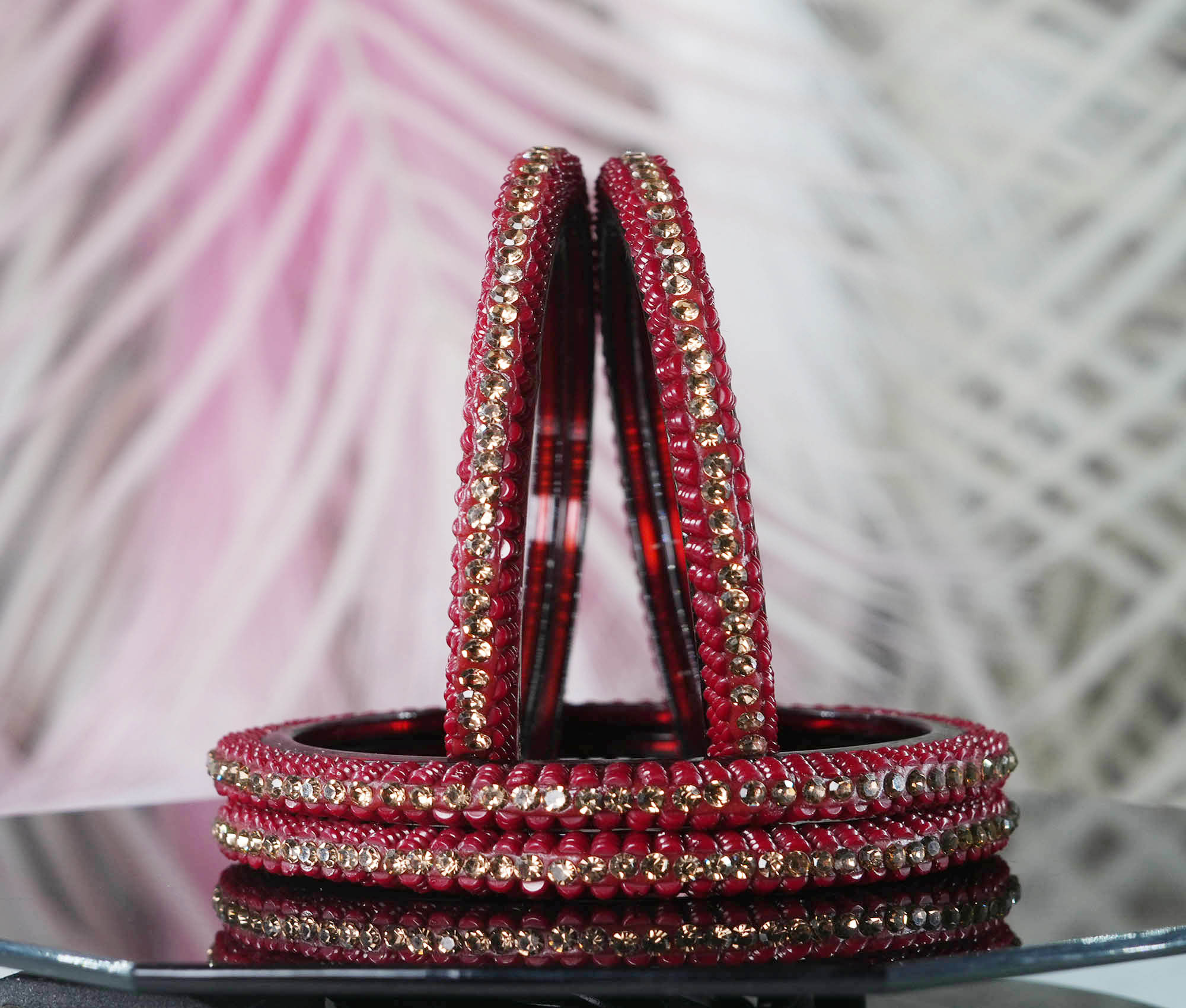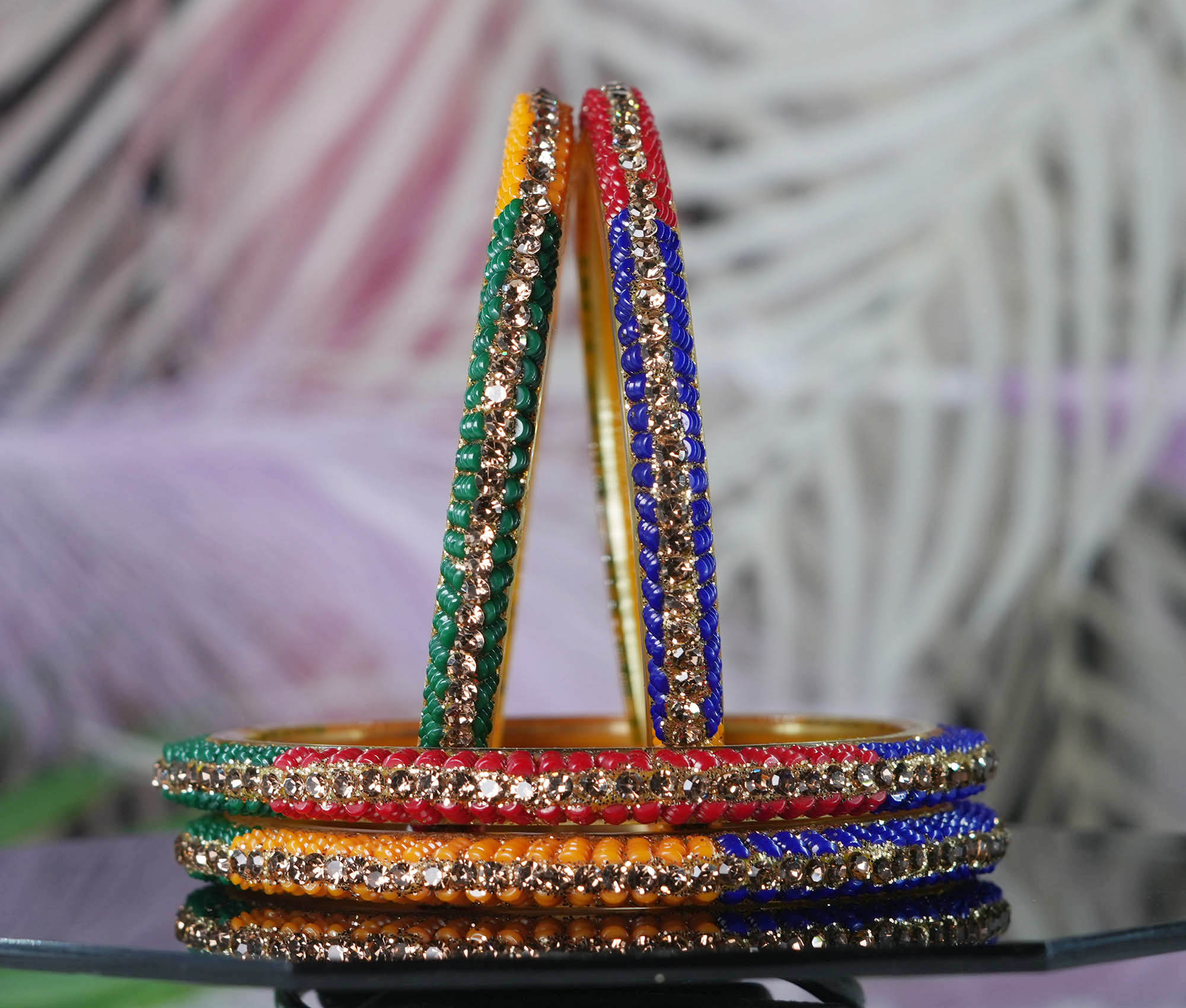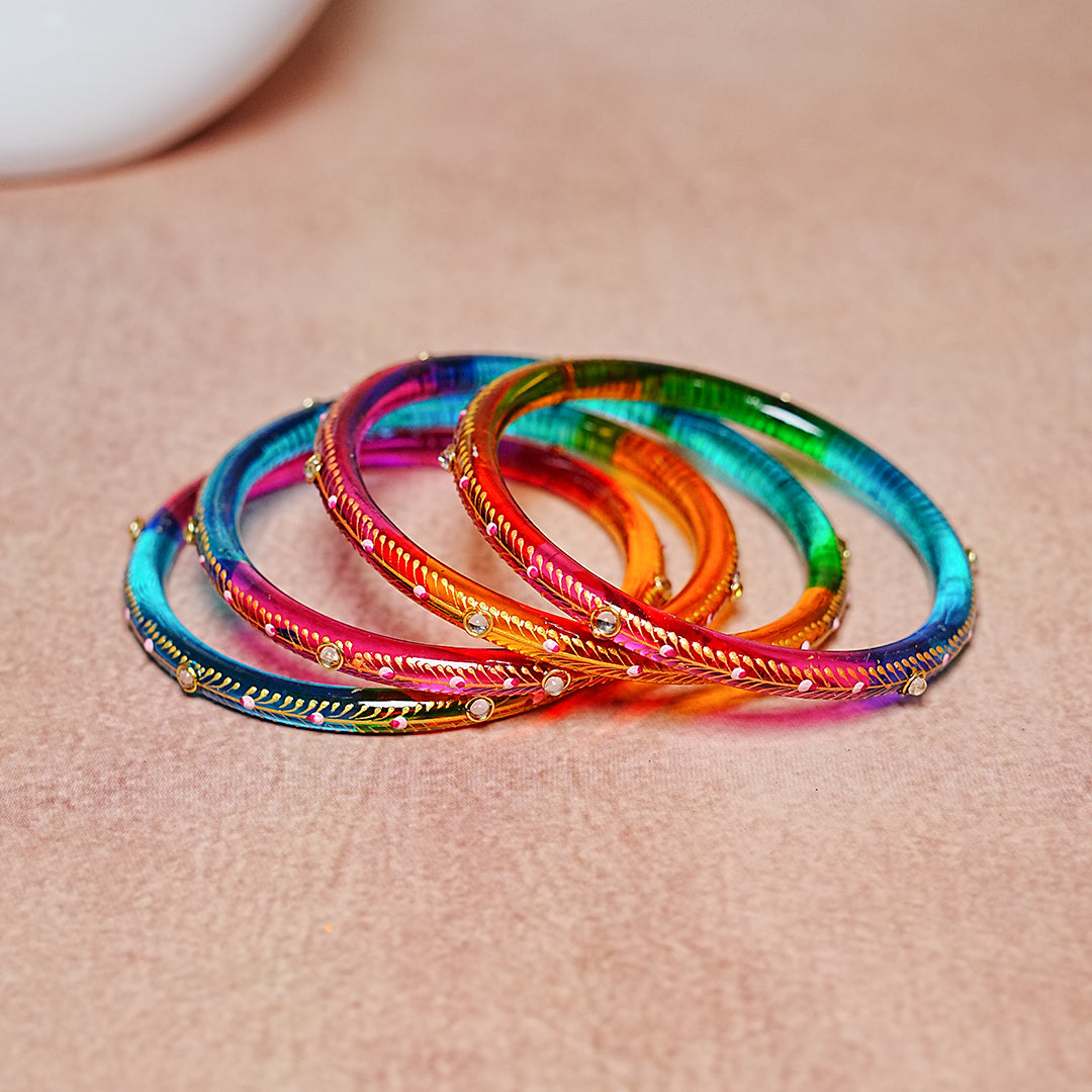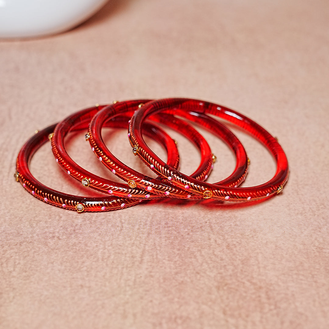 Glass Kada for Women & Girls Beads Studded Bangles for Ladies (Pack of 4 Kada)