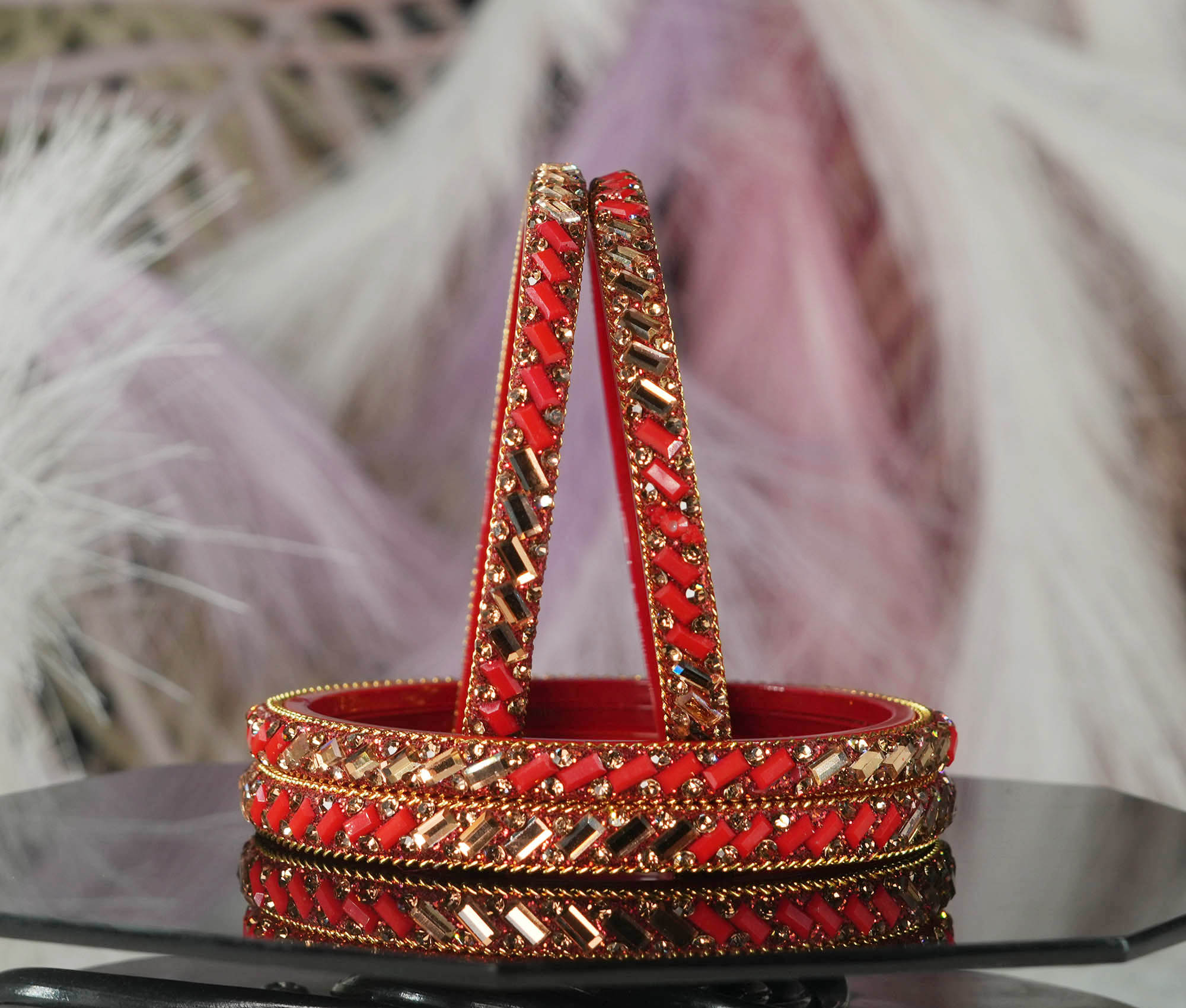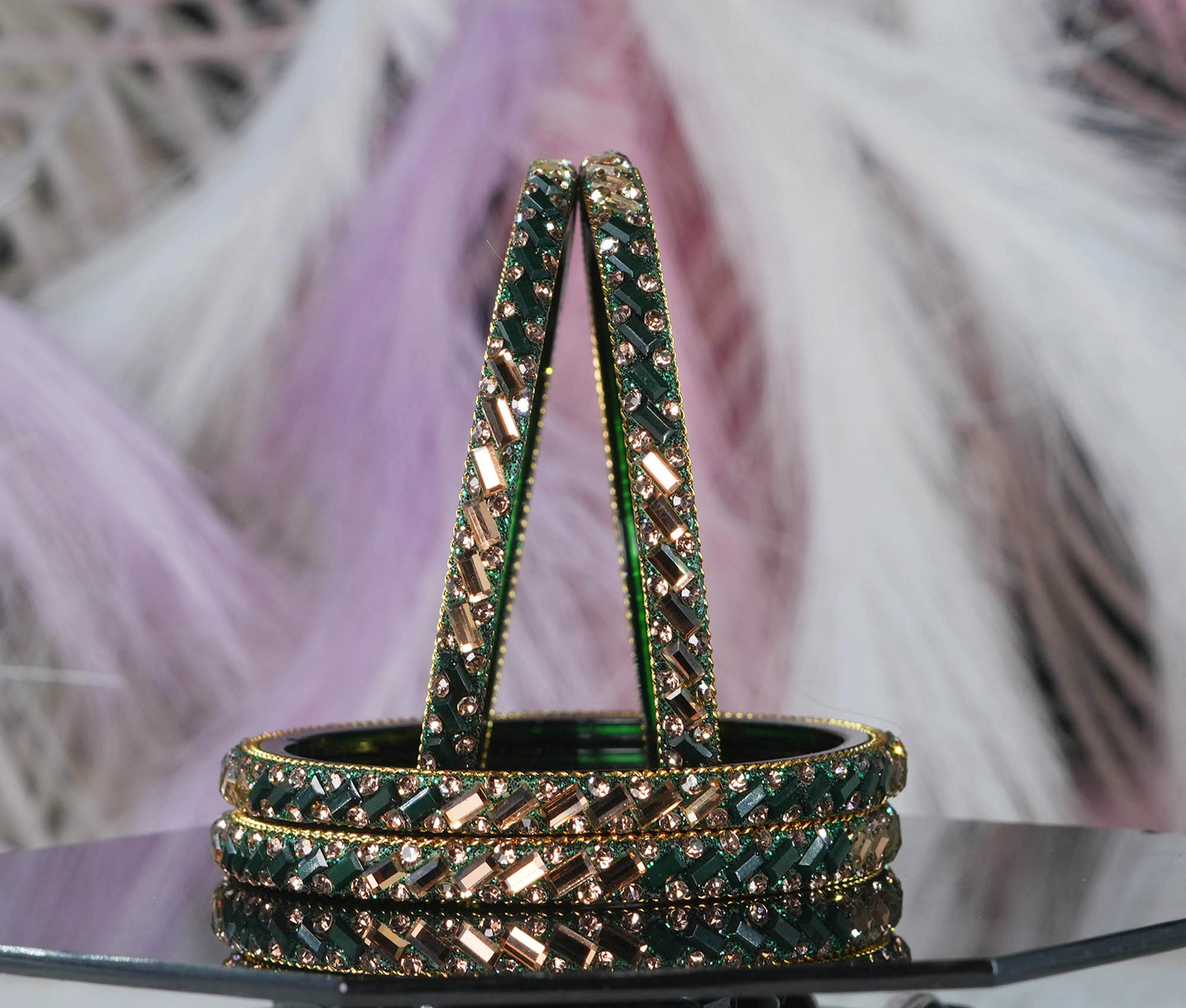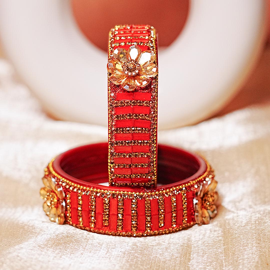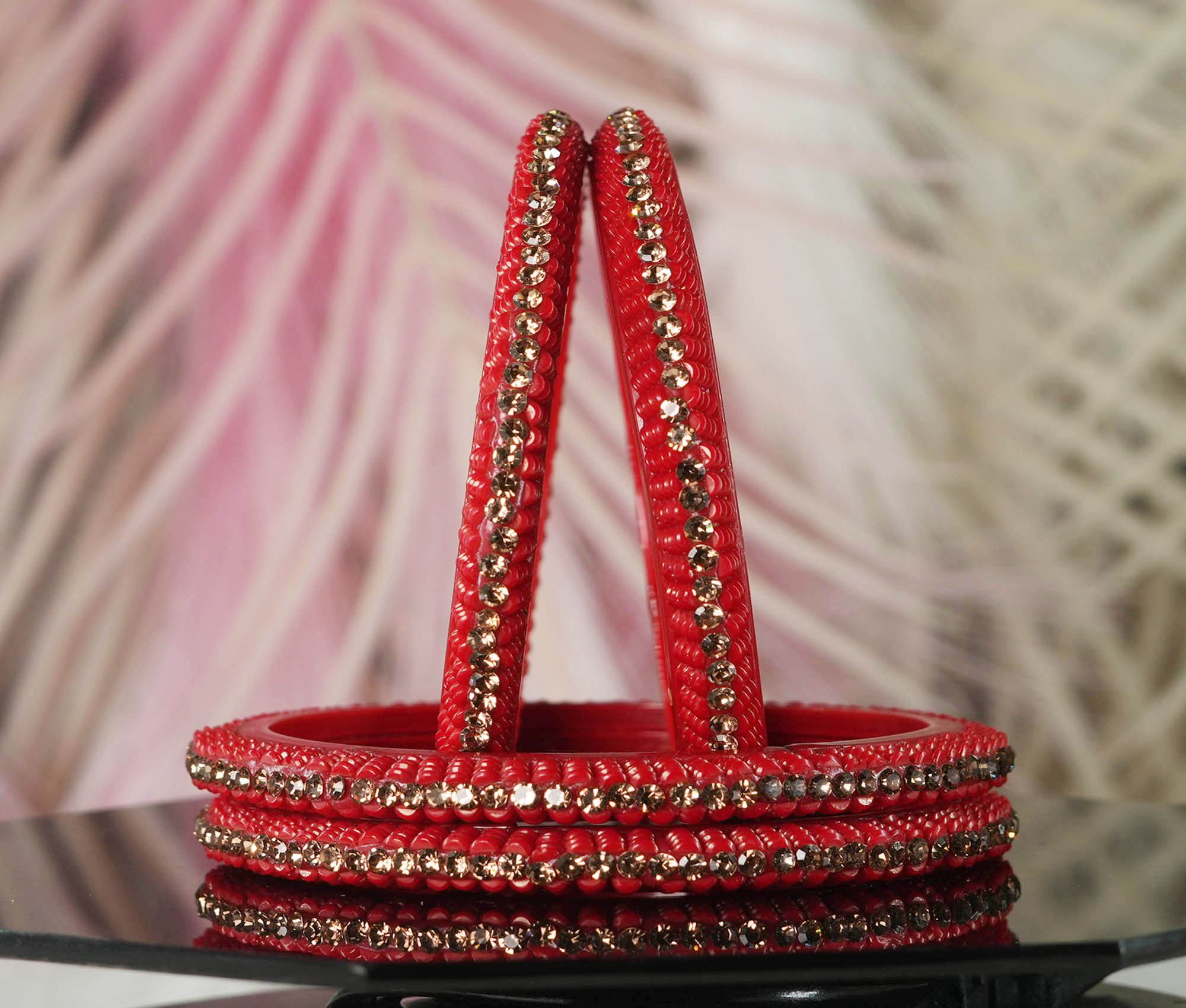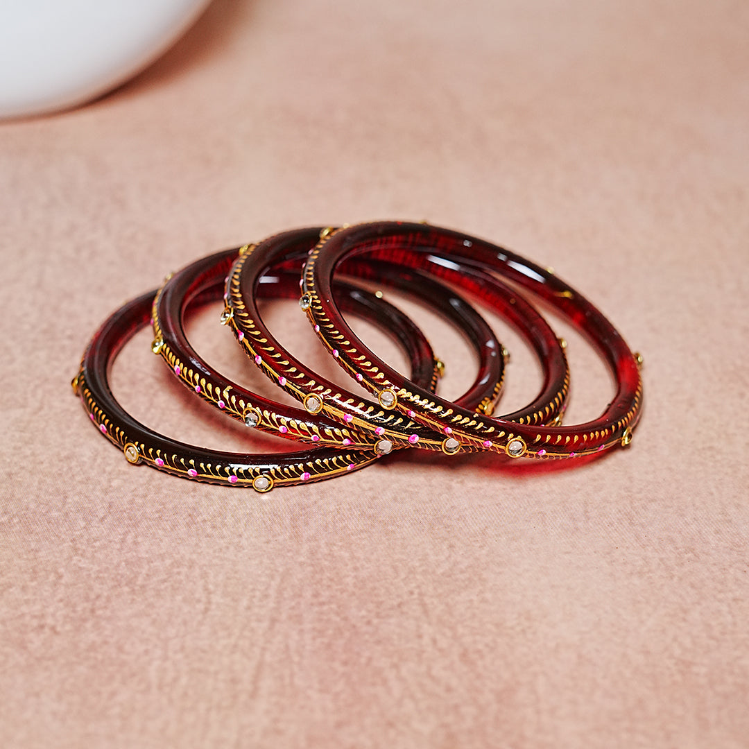 Glass Kada for Women & Girls Beads Studded Bangles for Ladies (Pack of 4 Kada)