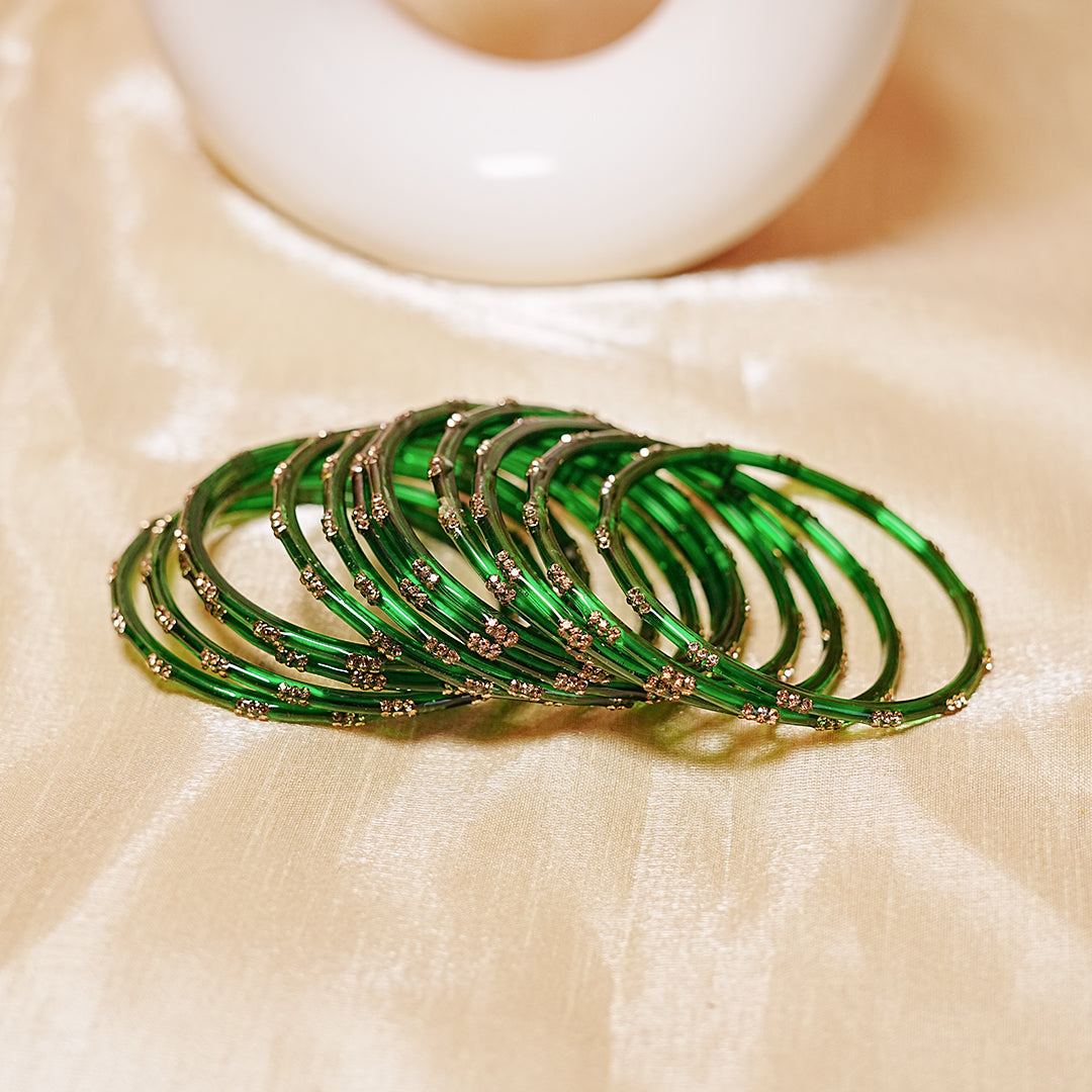 Dark Green Color Premium Silk Thread Bangle for Women & Girls (Pack of 12)
