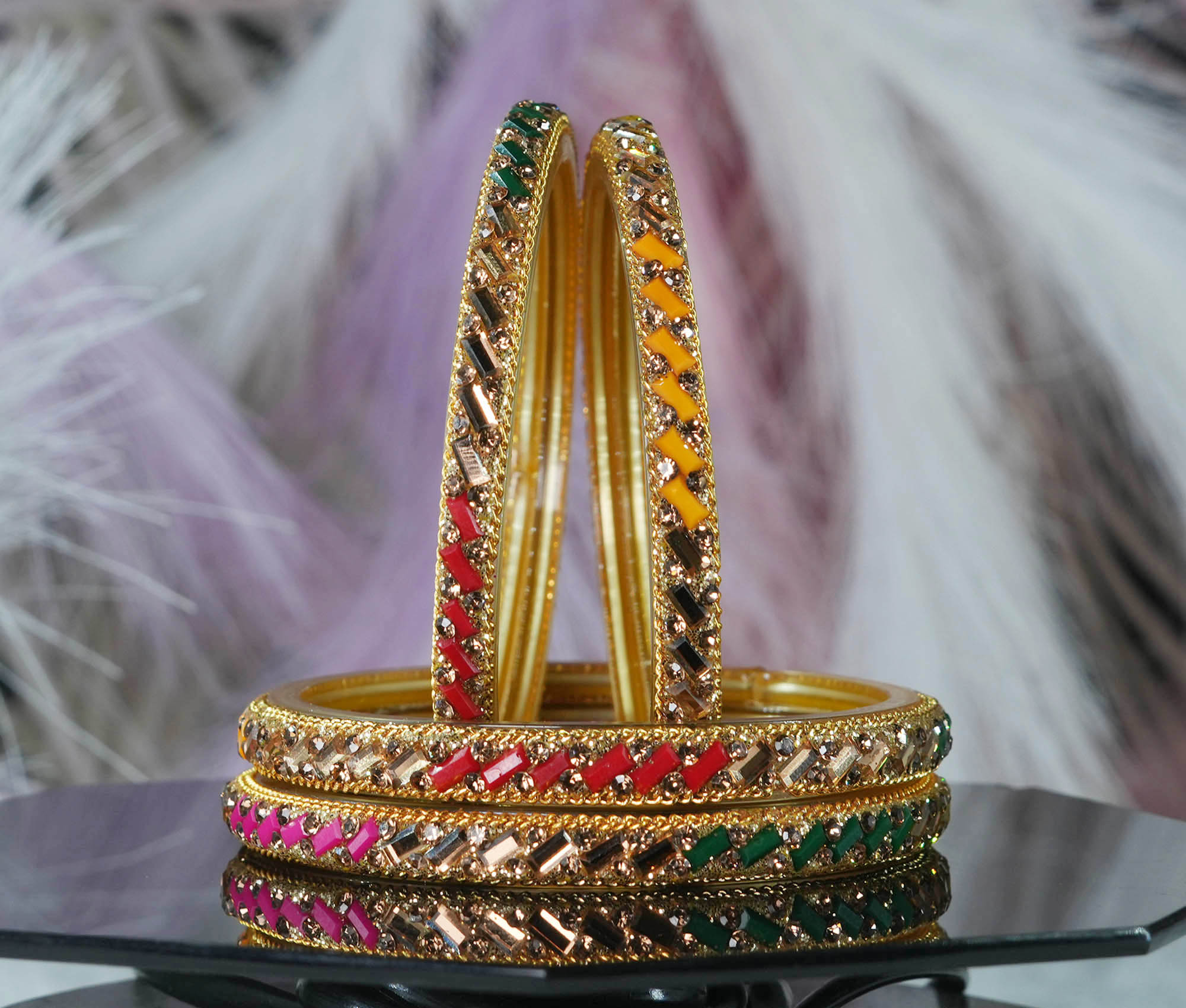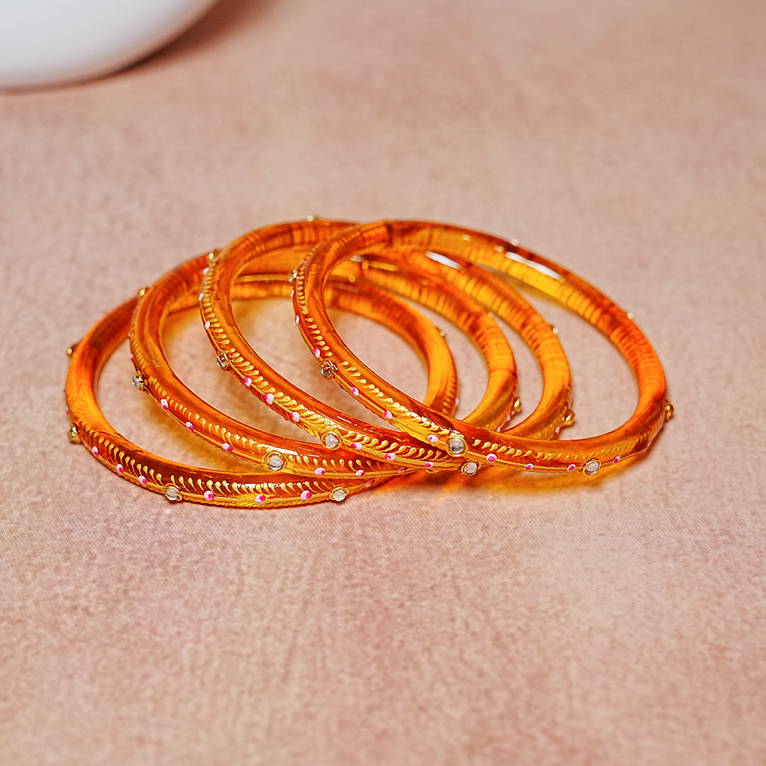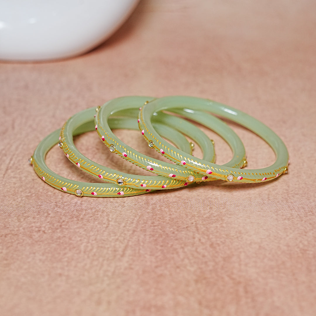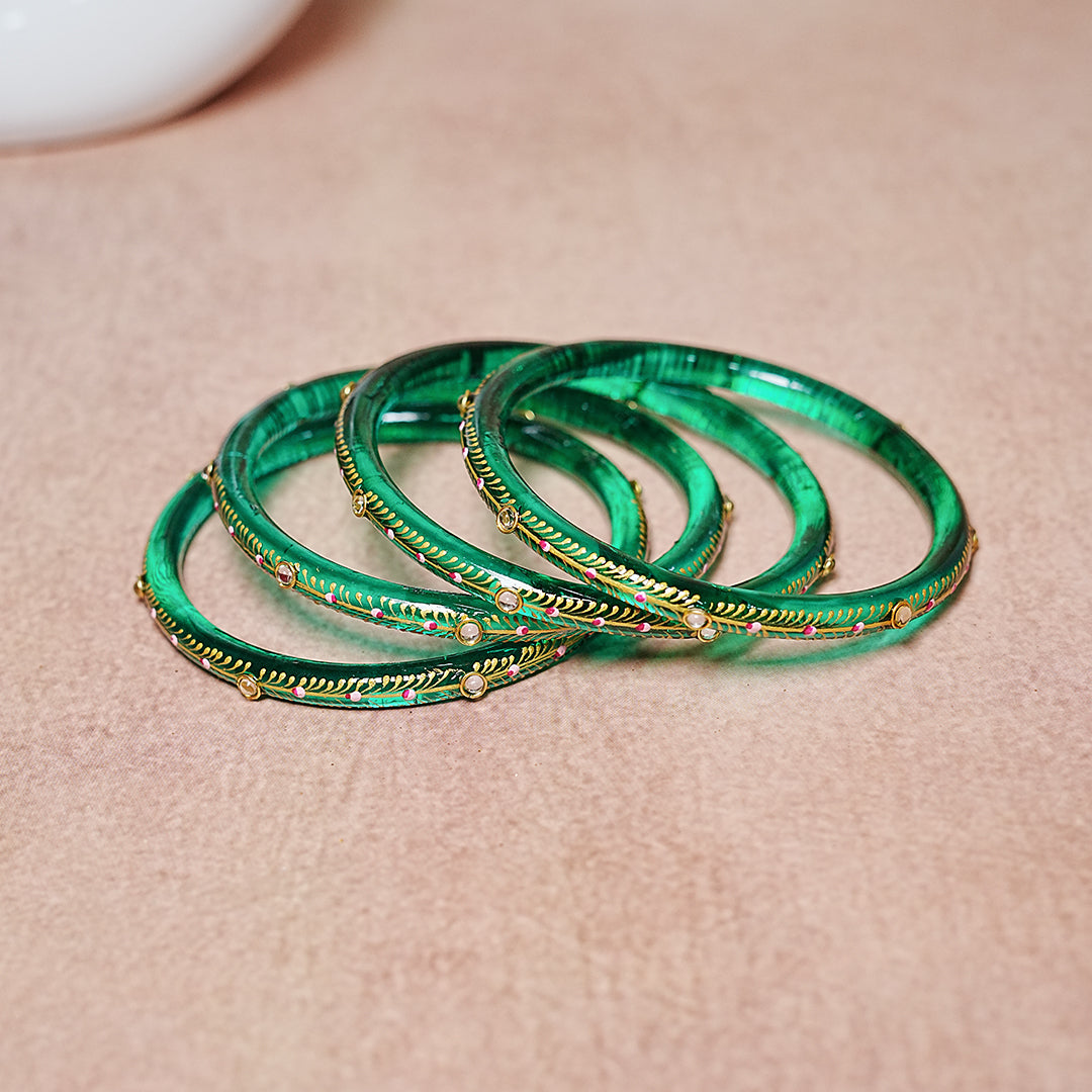 Glass Kada Bangles for Women & Girls | Meenakari with Stone Work (Pack of 4 kada)