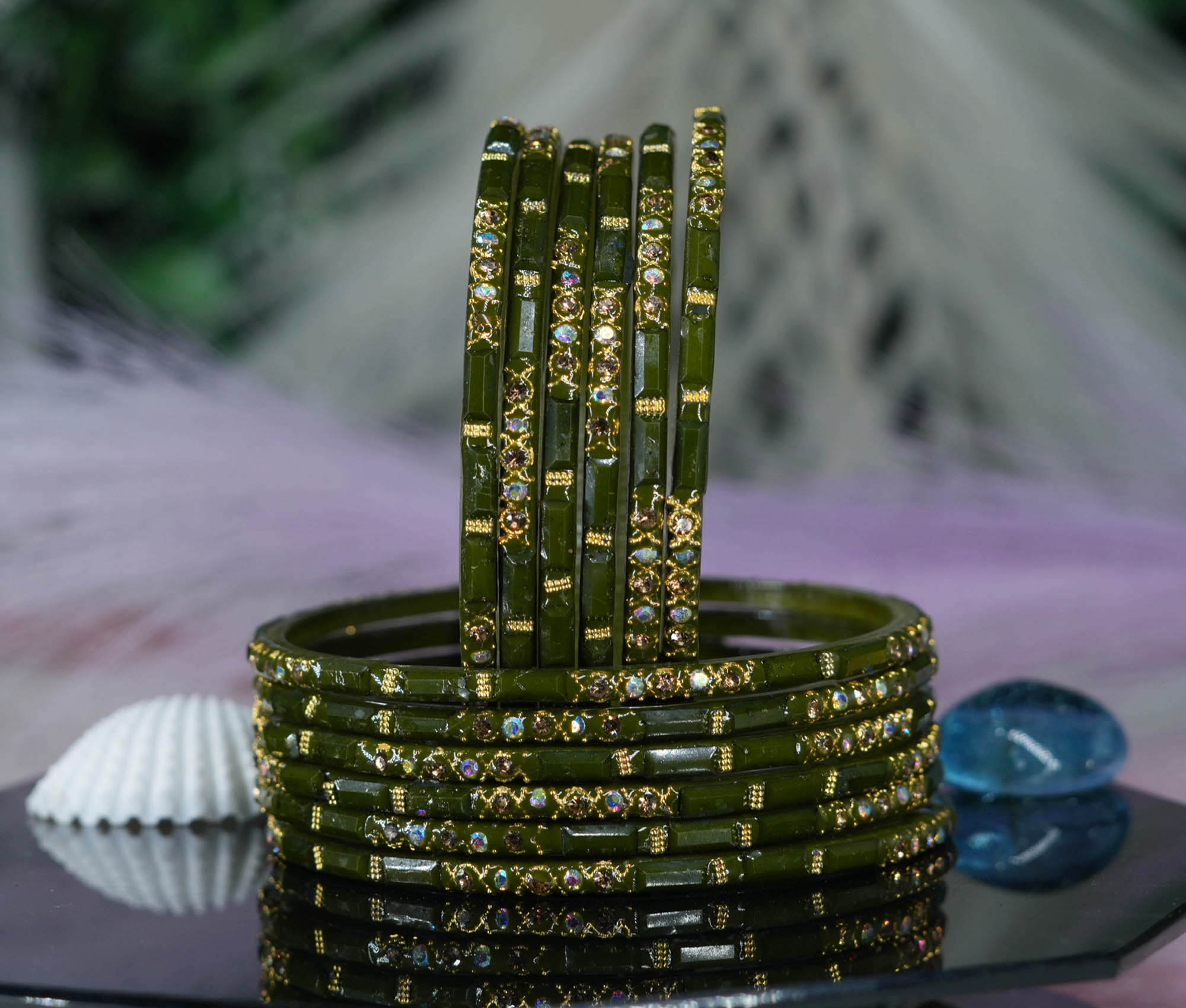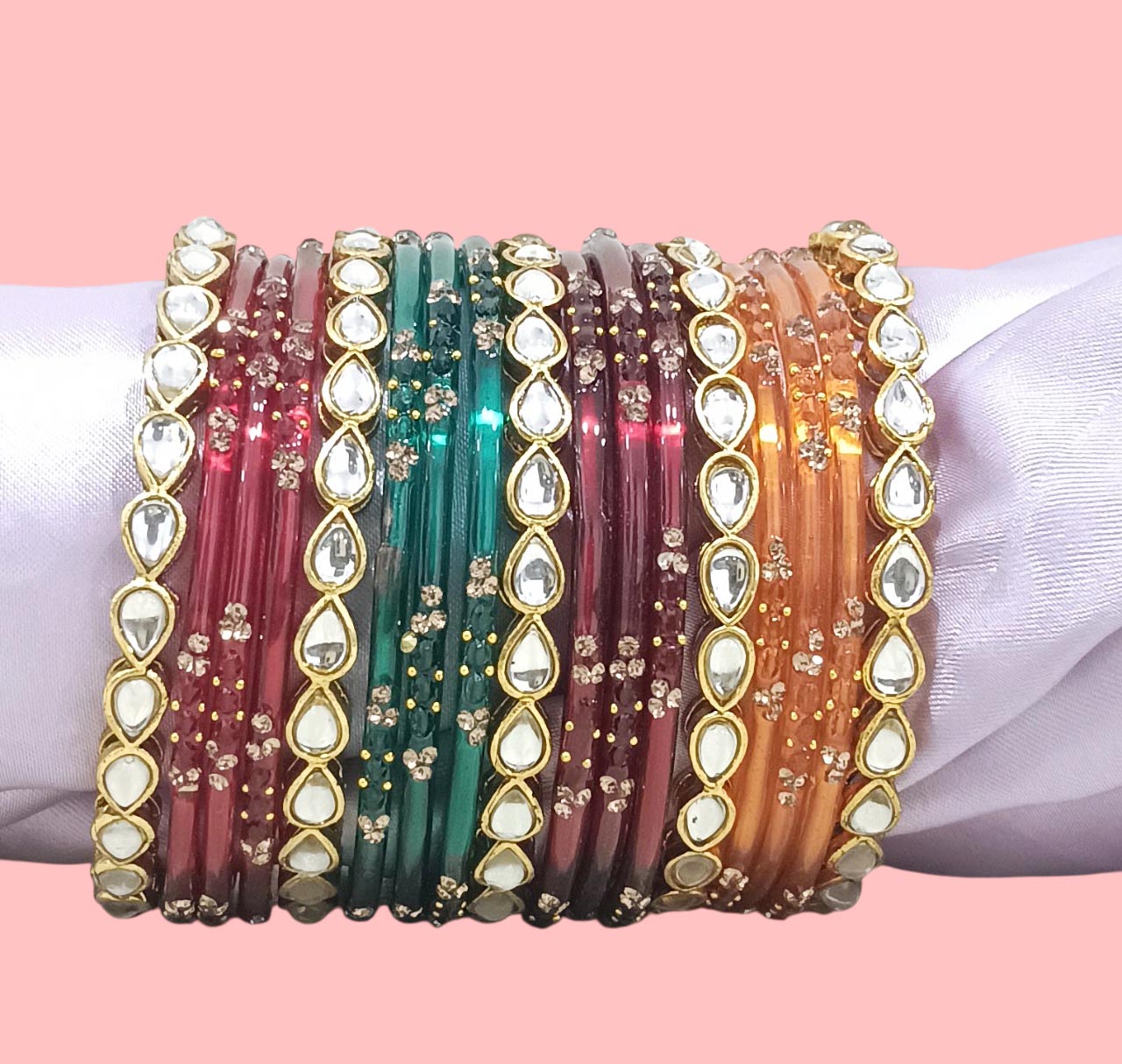 Traditional Glass Bangles Set for Women | Gold Plated with Kundan Stone
