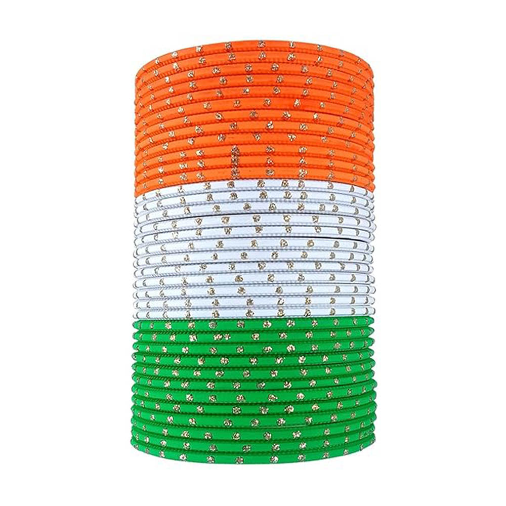 Tiranga Color Metal Bangles for Women Indian Flag Bangle Girls | Tricolor Plain Shining Chudi Set for Ladies, Independence & Republic Day