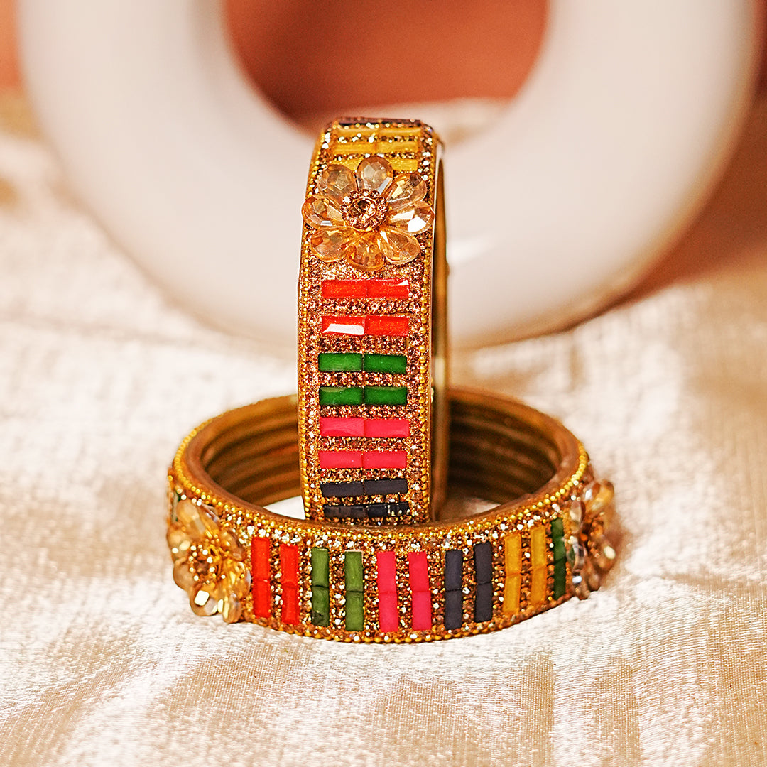 Traditional Glass Kada Bangle with Meenakari Work for Women & Girls (pack of 2 kada)