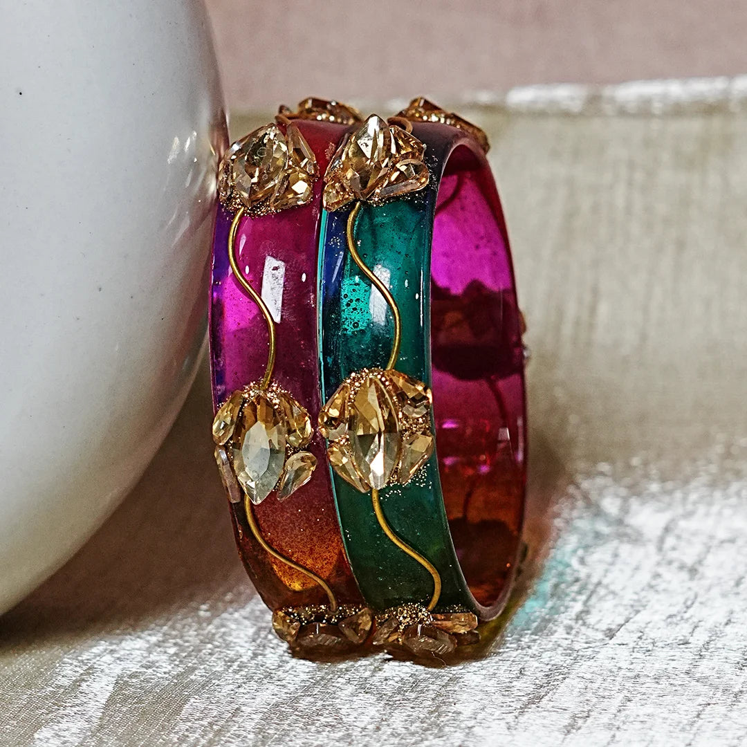 Floral Design Glass Kada for Women & Girls – (Pack of 2 Kada)