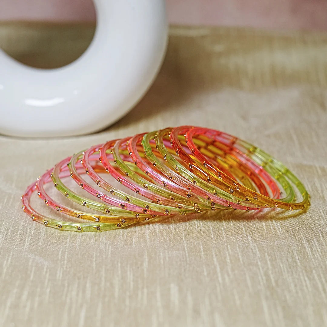 Multiple Color Glass Bangle with Stone Beads Work for Women & Girls (Pack 12 Bangles)