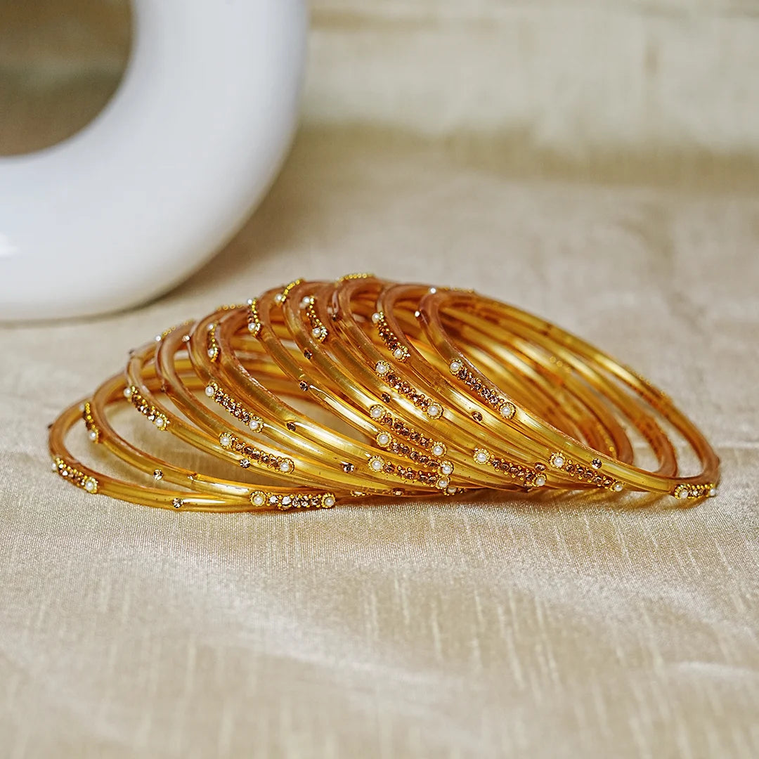 Traditional Glass Bangle with Golden Balls & Beads Studded for Women & Girls (Pack of 12 Bangles)