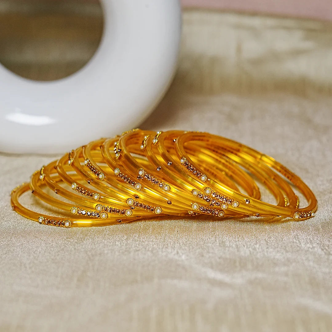 Premium Glass Bangles for Women | Zircon & Beads Work | Glossy Finish (Pack of 12)
