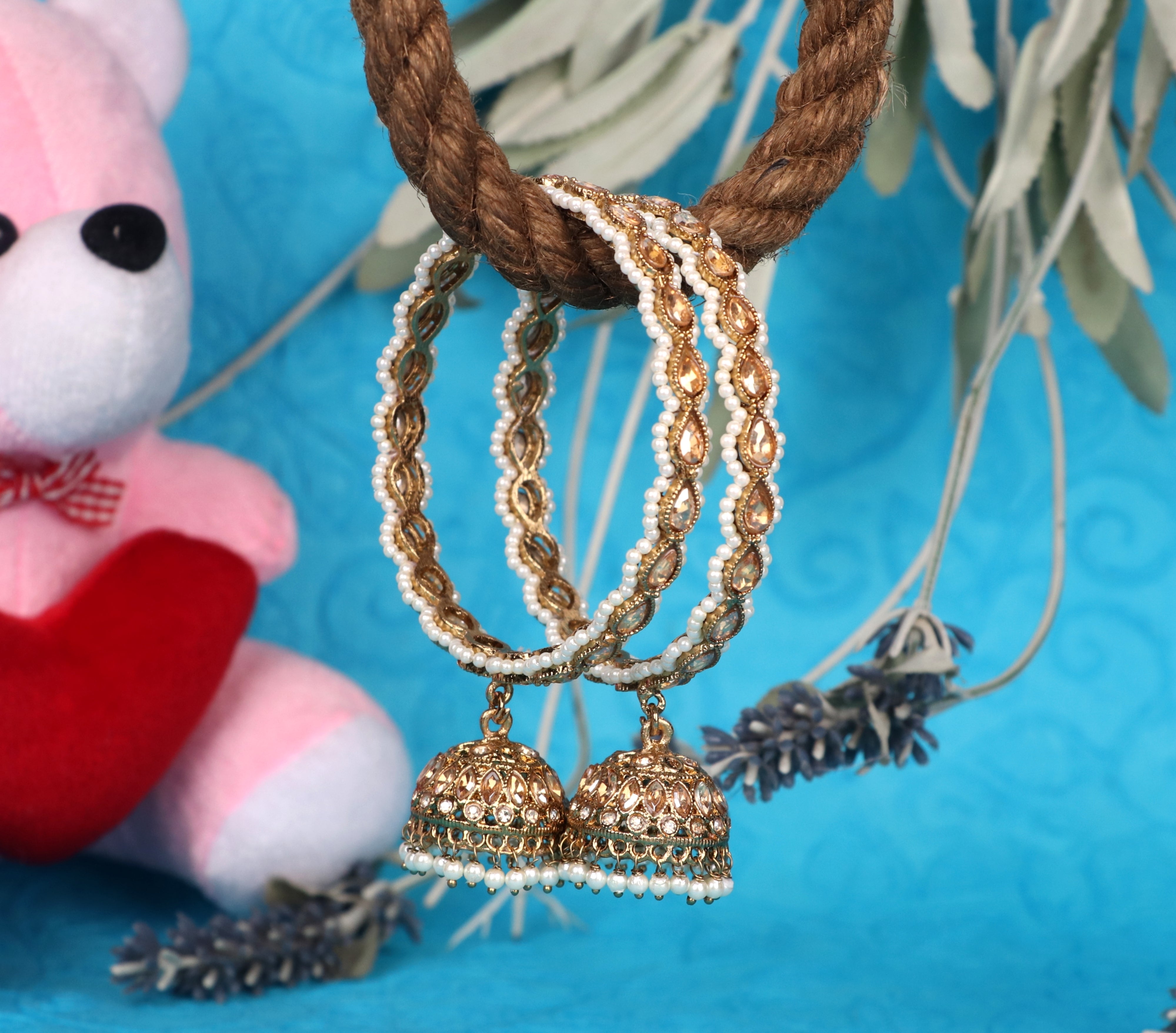Antique Golden Plated Jhumki Latkan Kada Bangles | Traditional Stylish Kundan Kada for Women & Girls