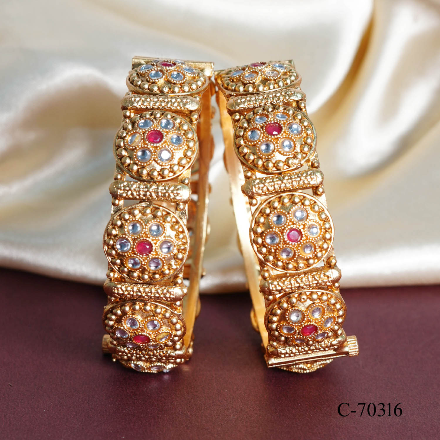 Multi Color Latkan Rajwadi Kada for Bridal, Traditional Jewelry Gold-Plated Kada’s for Wedding & Perfect for Brides