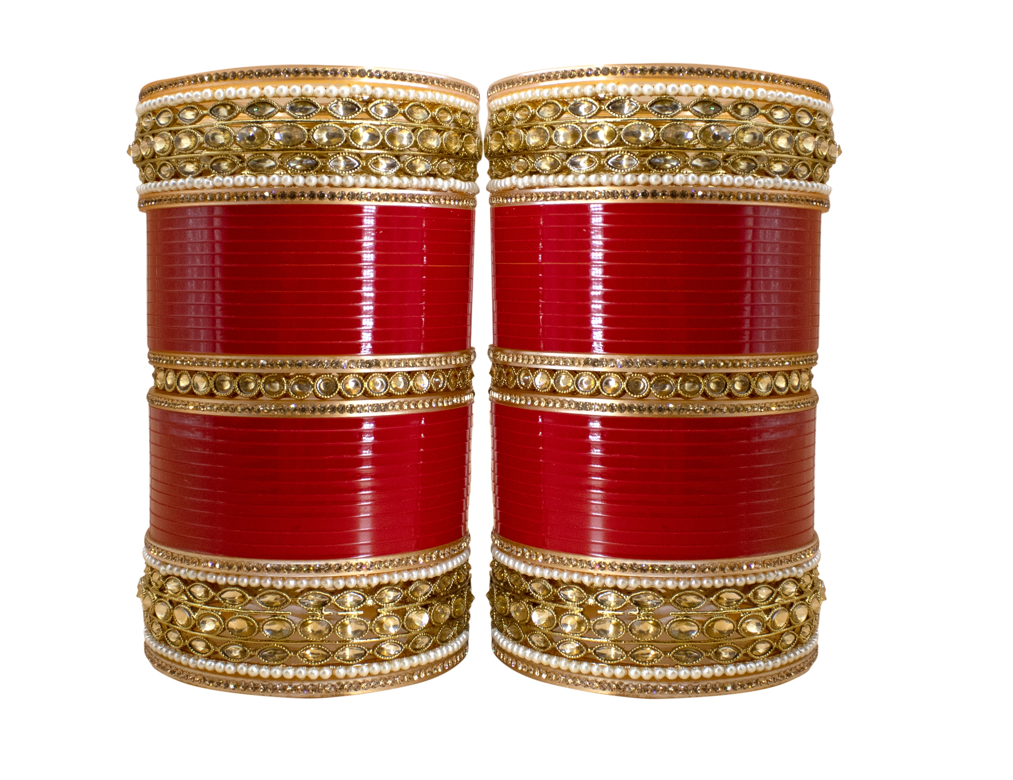Red Bridal Chuda Set for Women Traditional Seep Bangles with Kundan Kada for Weddings & Occasion