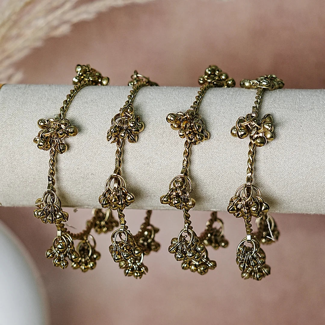 Ghungru Style Antique Gold Polished Metal Kada Bangles (Pack of 4)
