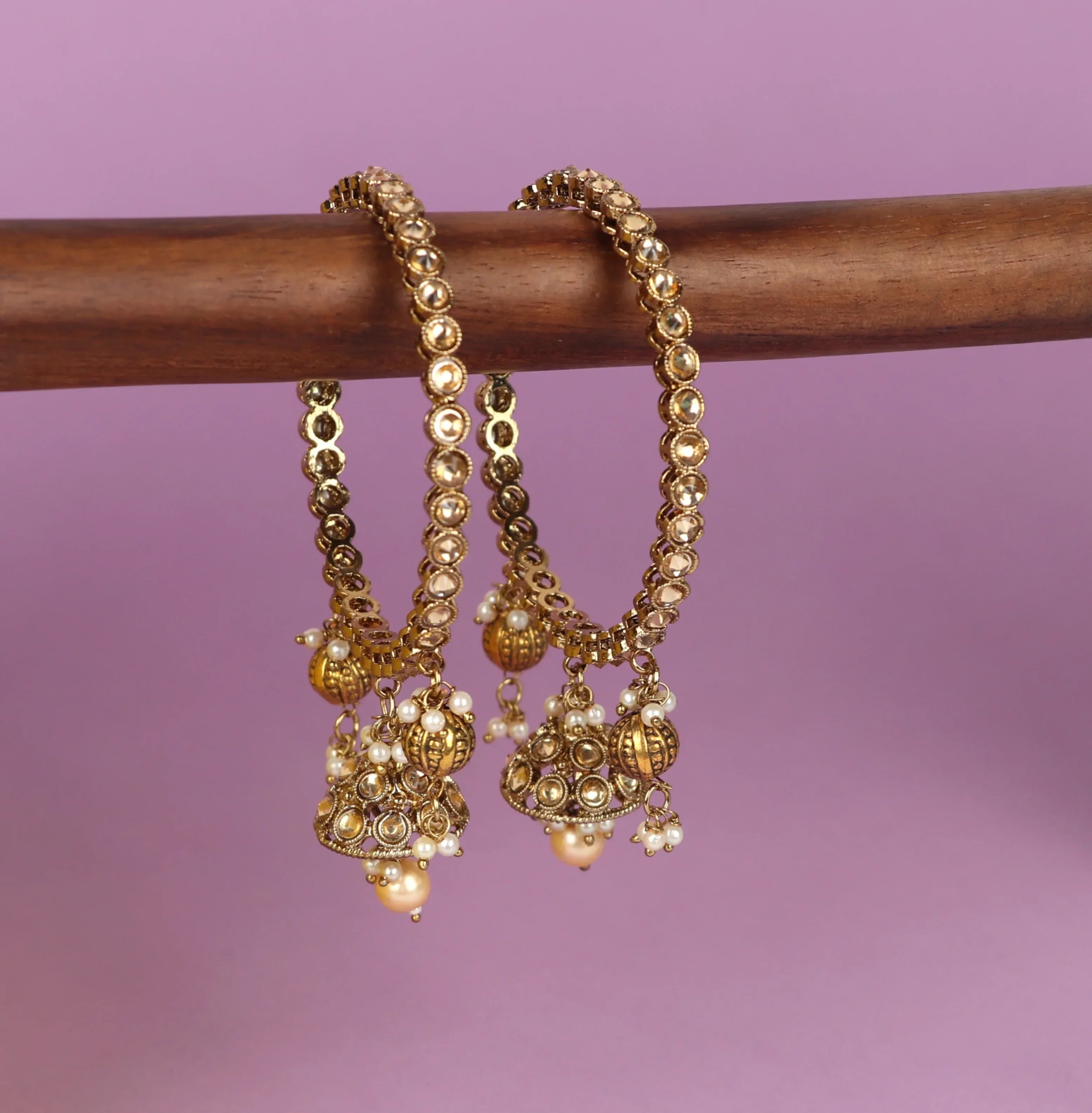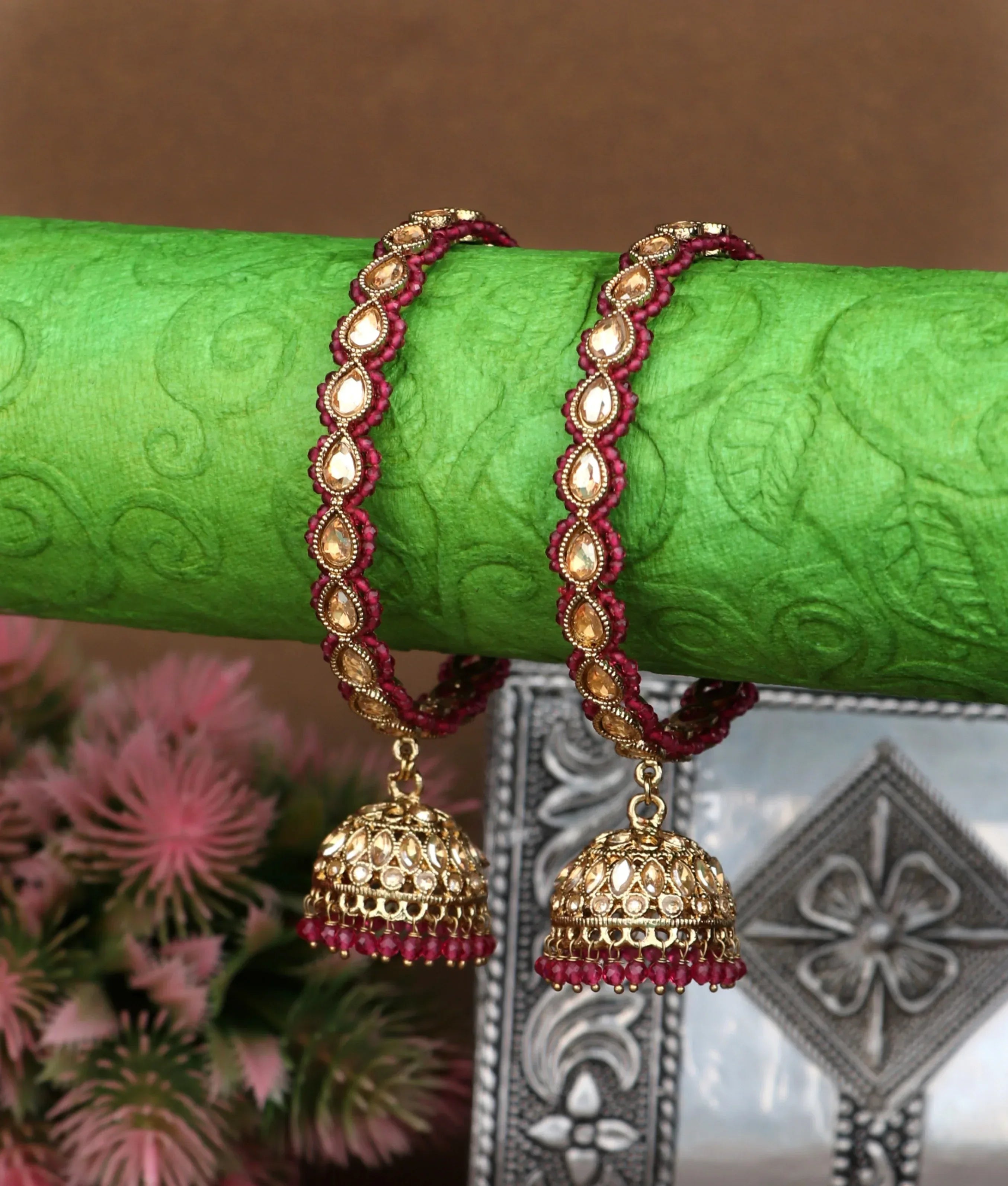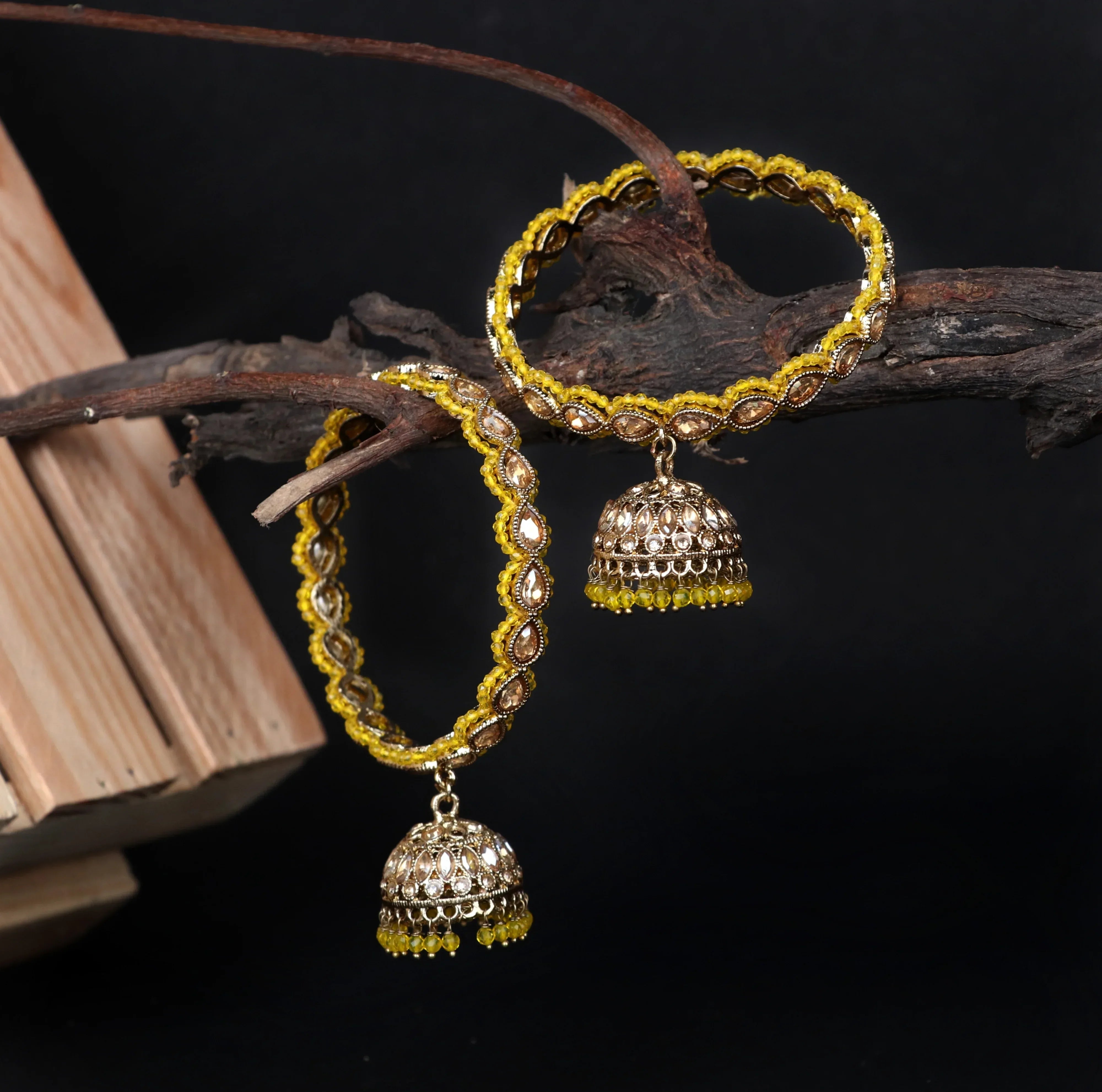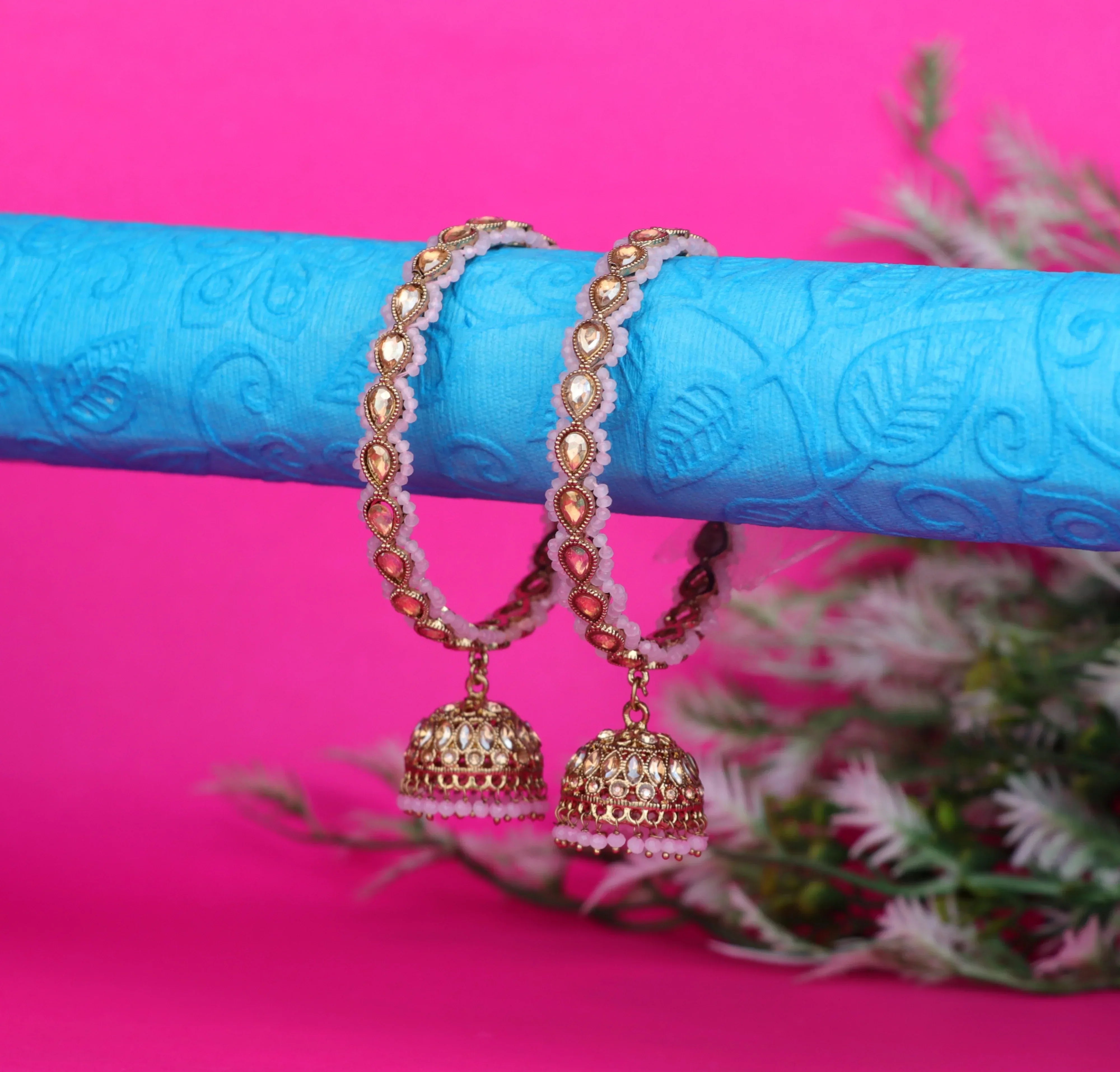 Traditional Kundan Studded Metal Kada with Jhumki for Women (Pack Of 2)