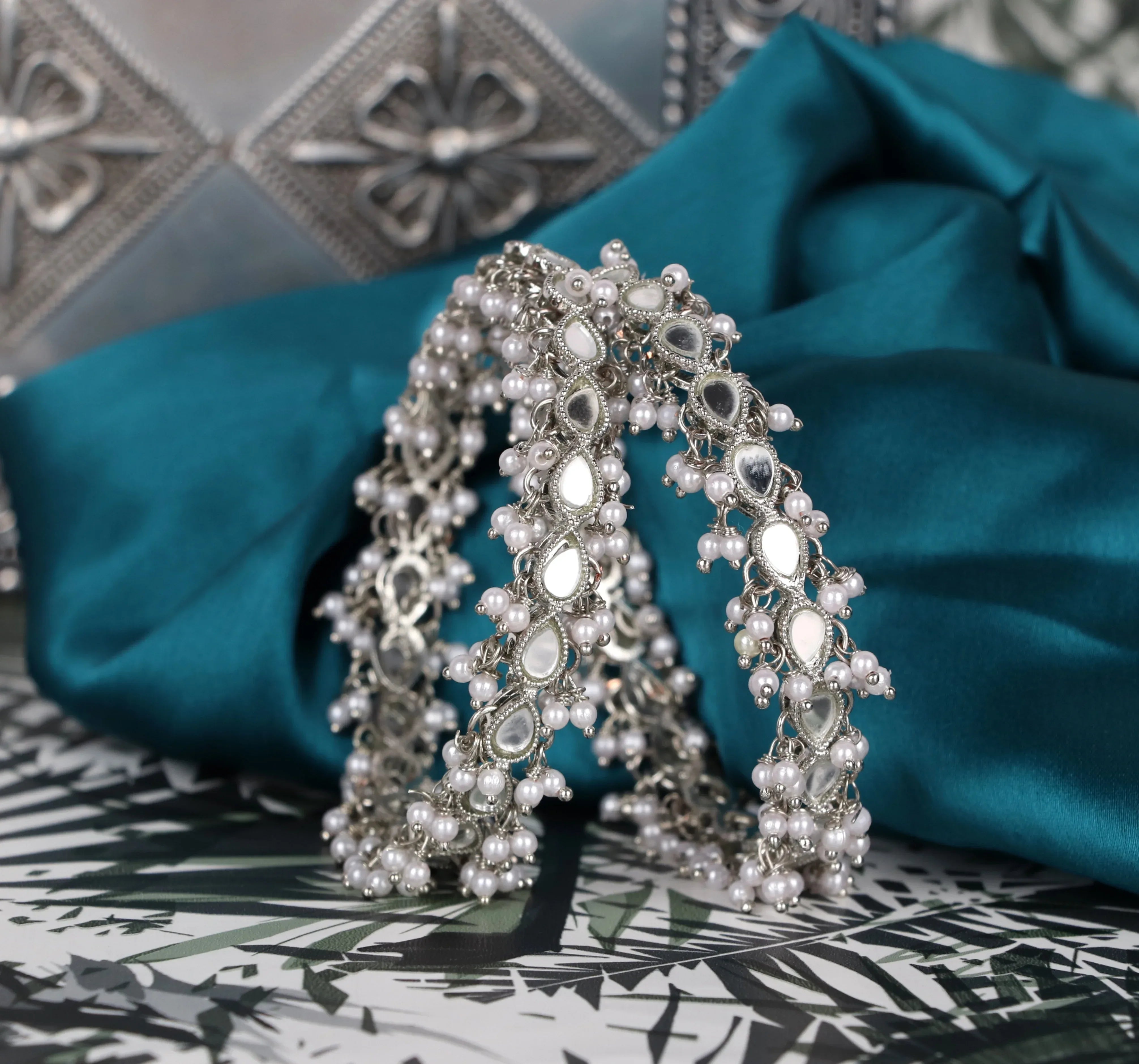 Silver Mirror Work Metal Kada for Women with Pearl (Pack Of 2)