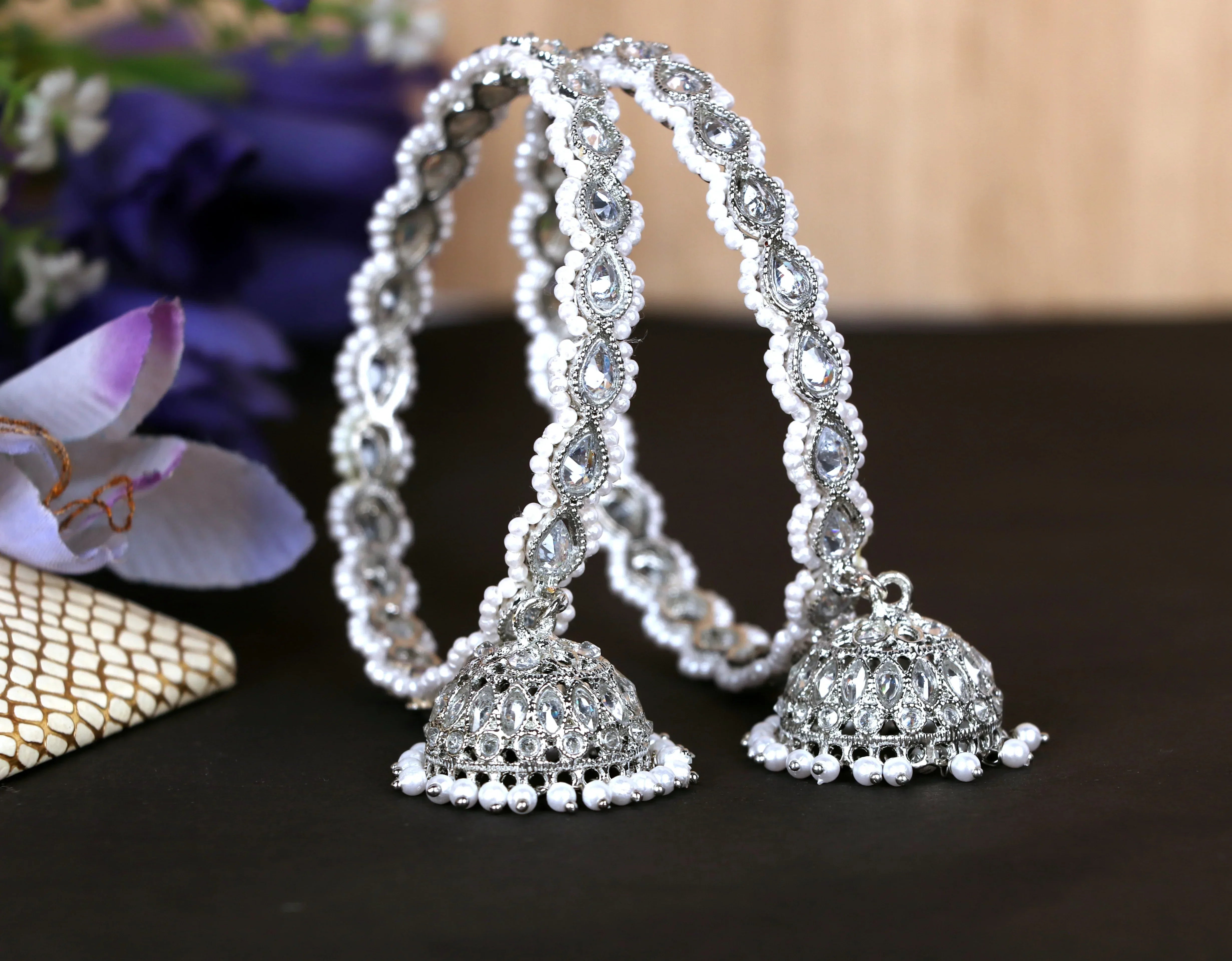 Silver Metal Kada for Women with Kundan Work & Jhumki (Pack Of 2)