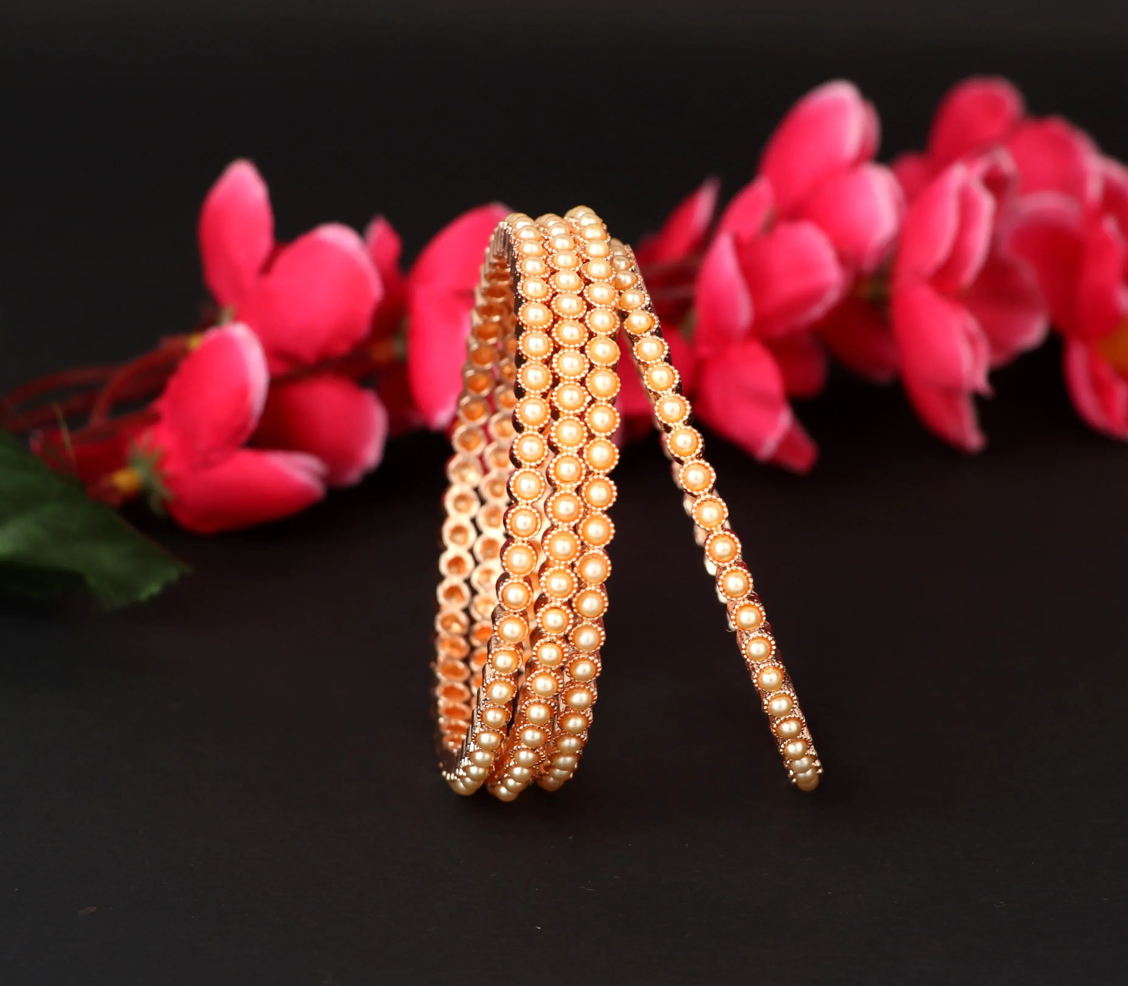 Gold Pearl Studded Metal Kada for Women (Pack Of 2)