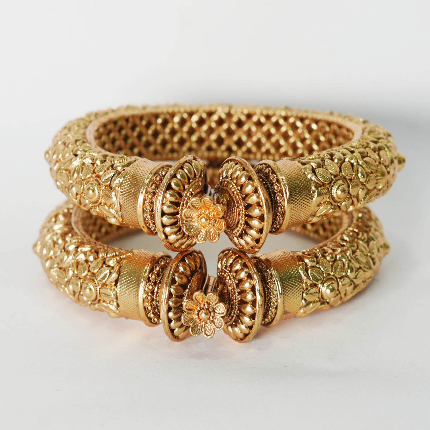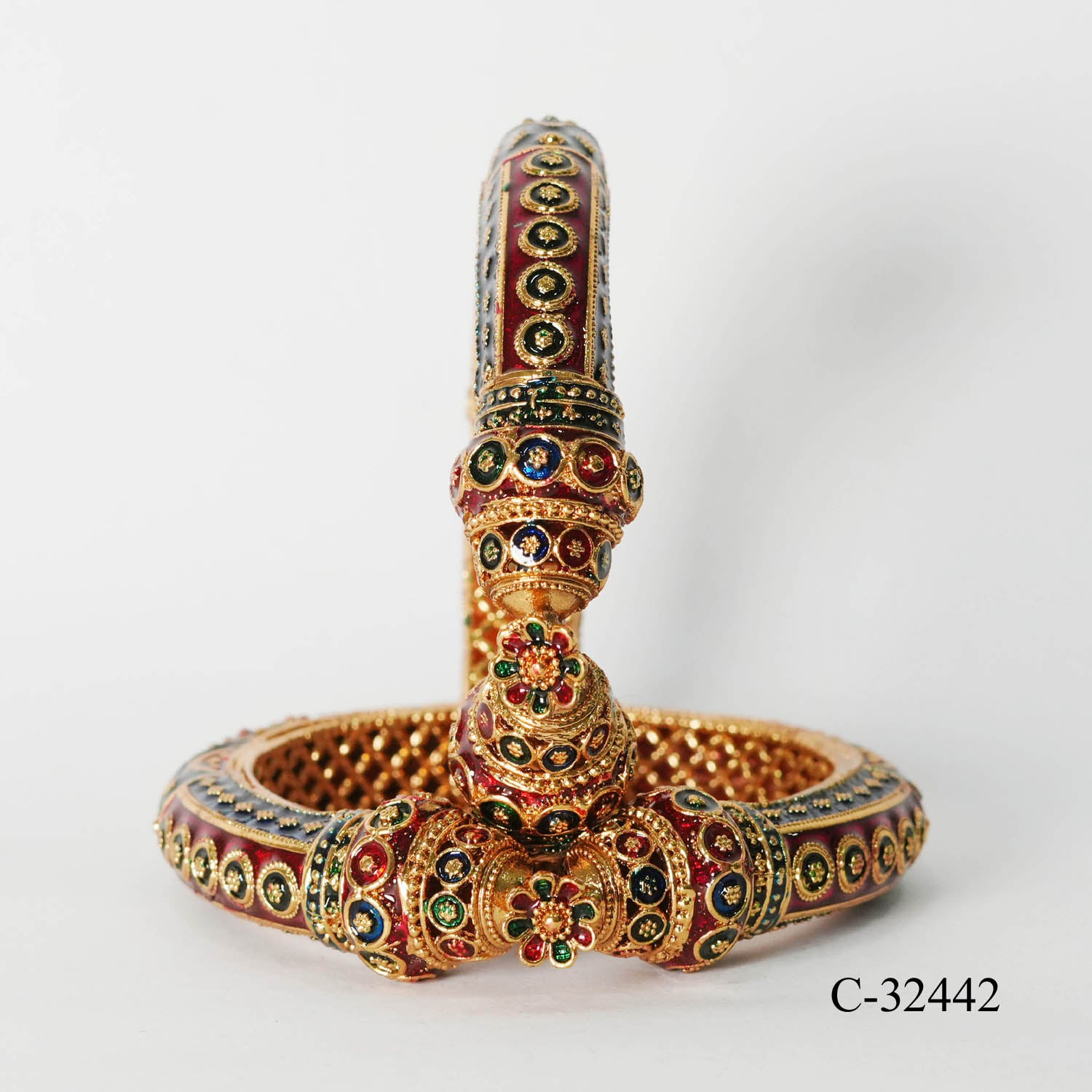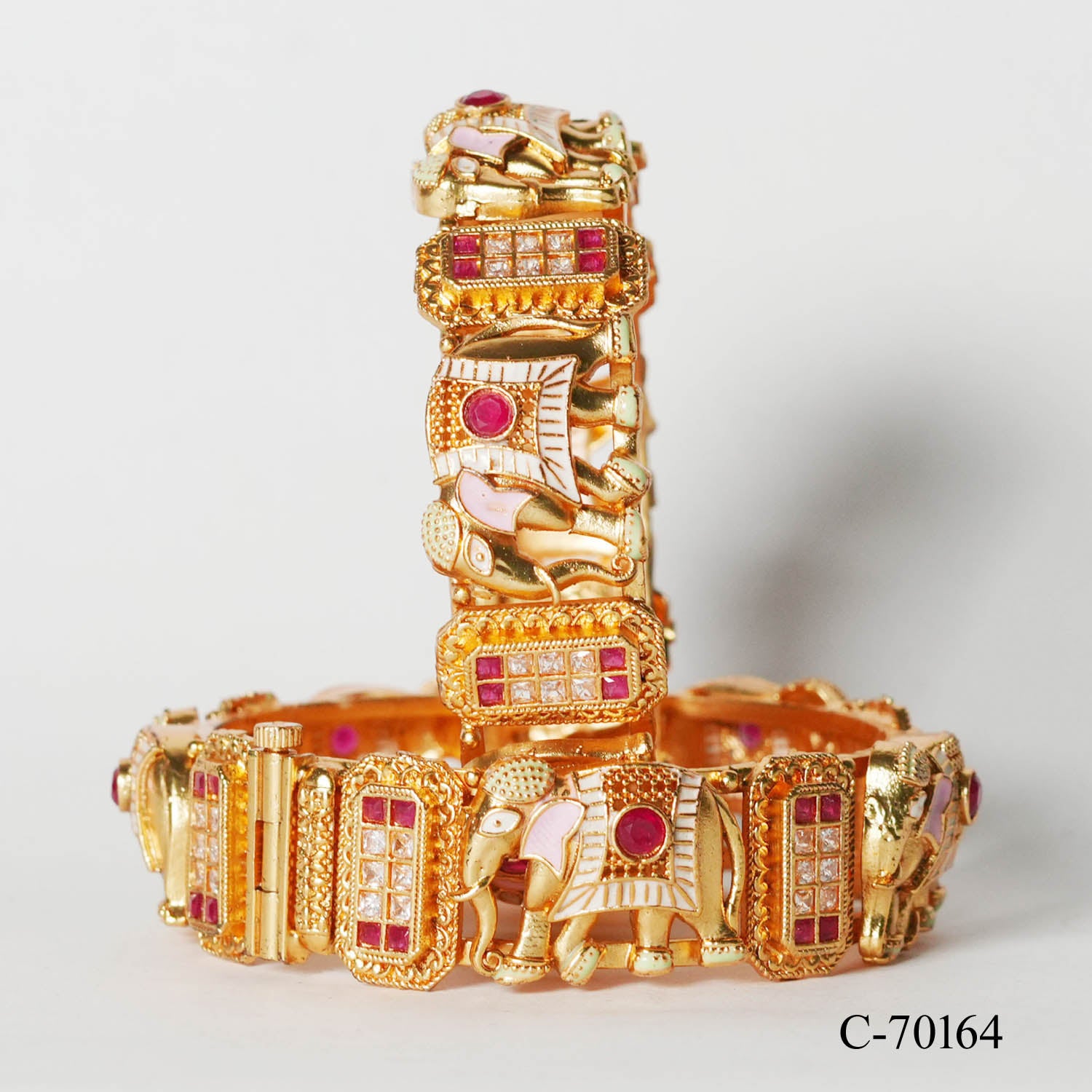 Keep your jadau kundan pieces stored in a dry, soft jewelry box. Avoid exposure to perfumes, chemicals, or water to maintain their shine and traditional finish, especially for delicate bracelets or detailed brass gold work.