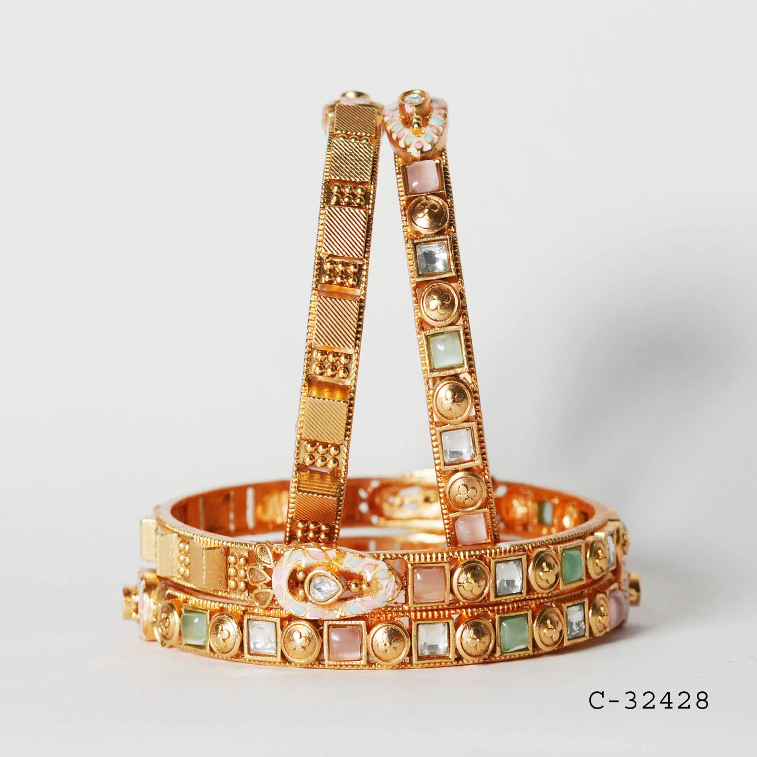 Please note that the sizing of metal bangles differs from that of glass bangles. We request customers to carefully check size charts and details before placing an order.