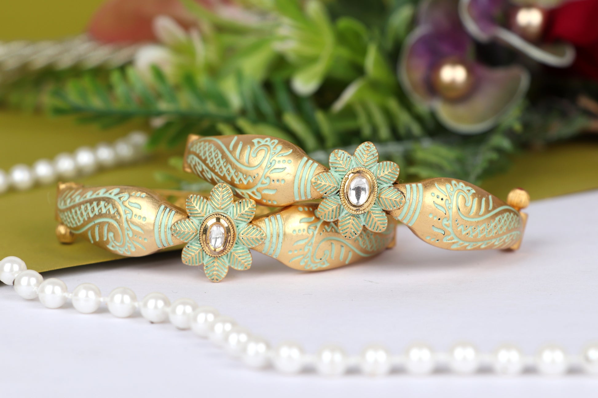 • Premium Brass with Golden Finish: Made from high-quality brass and coated with a stunning golden finish, this Bracelet Kada adds a touch of traditional to any outfit.