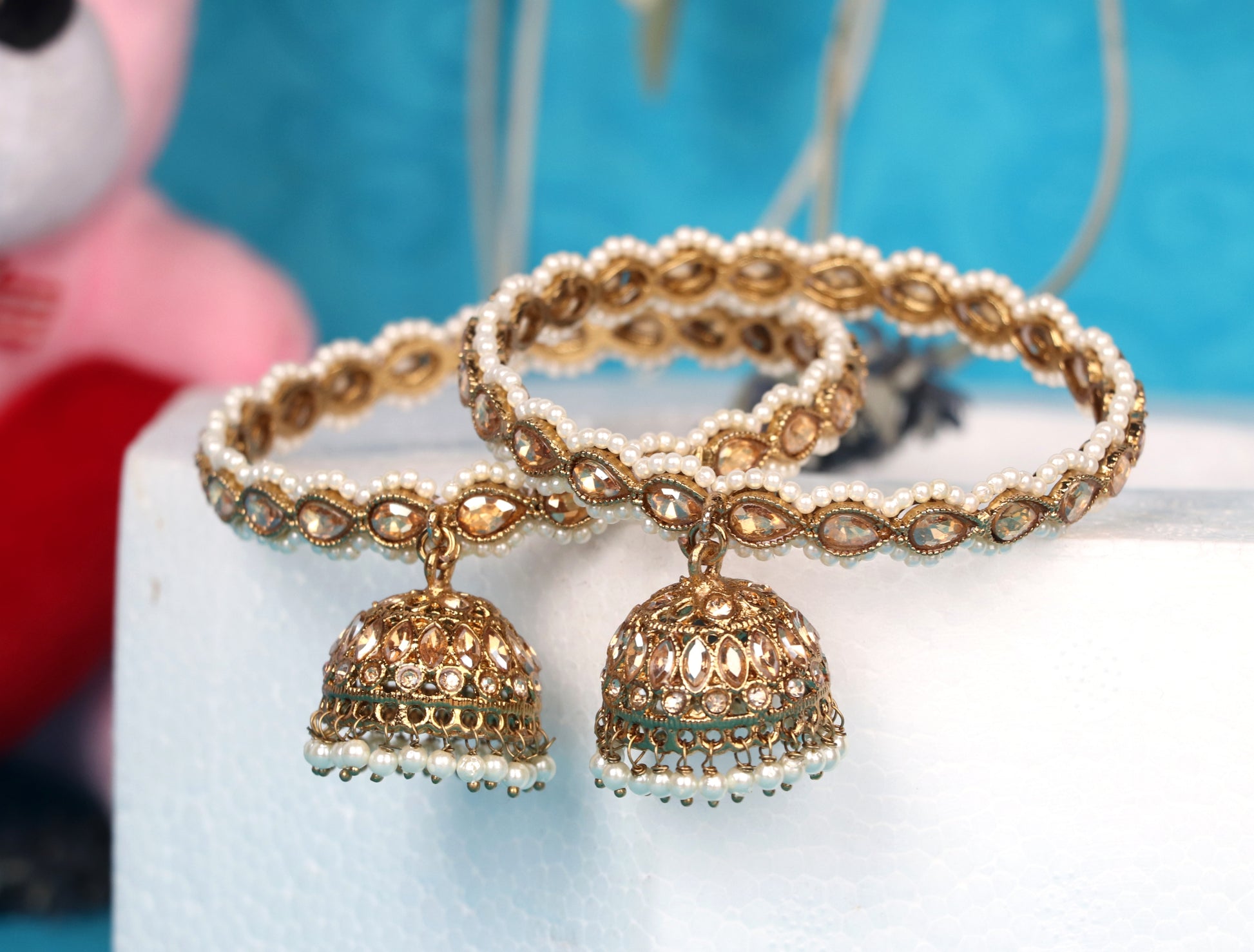 Antique Golden Plated Jhumki Latkan Kada Bangles | Traditional Stylish Kundan Kada for Women & Girls