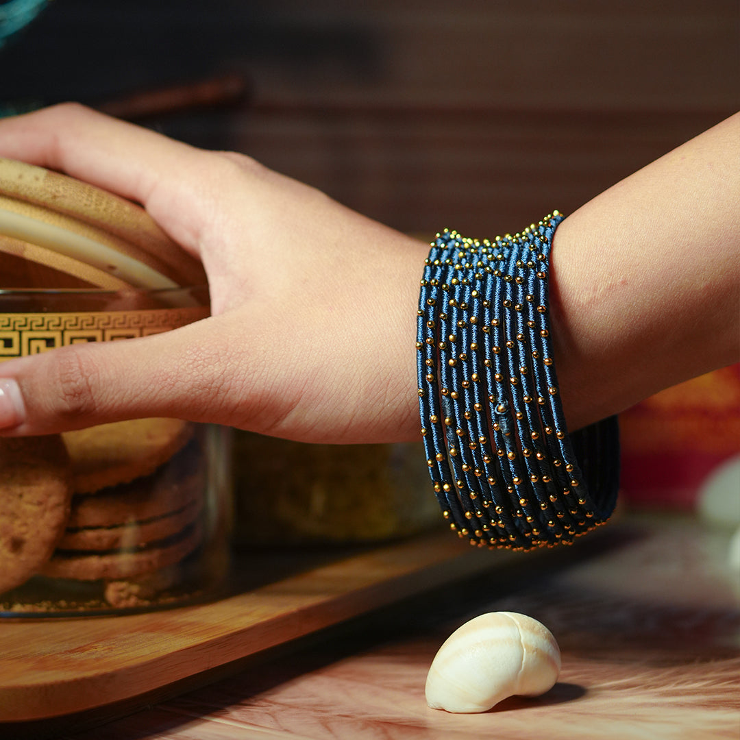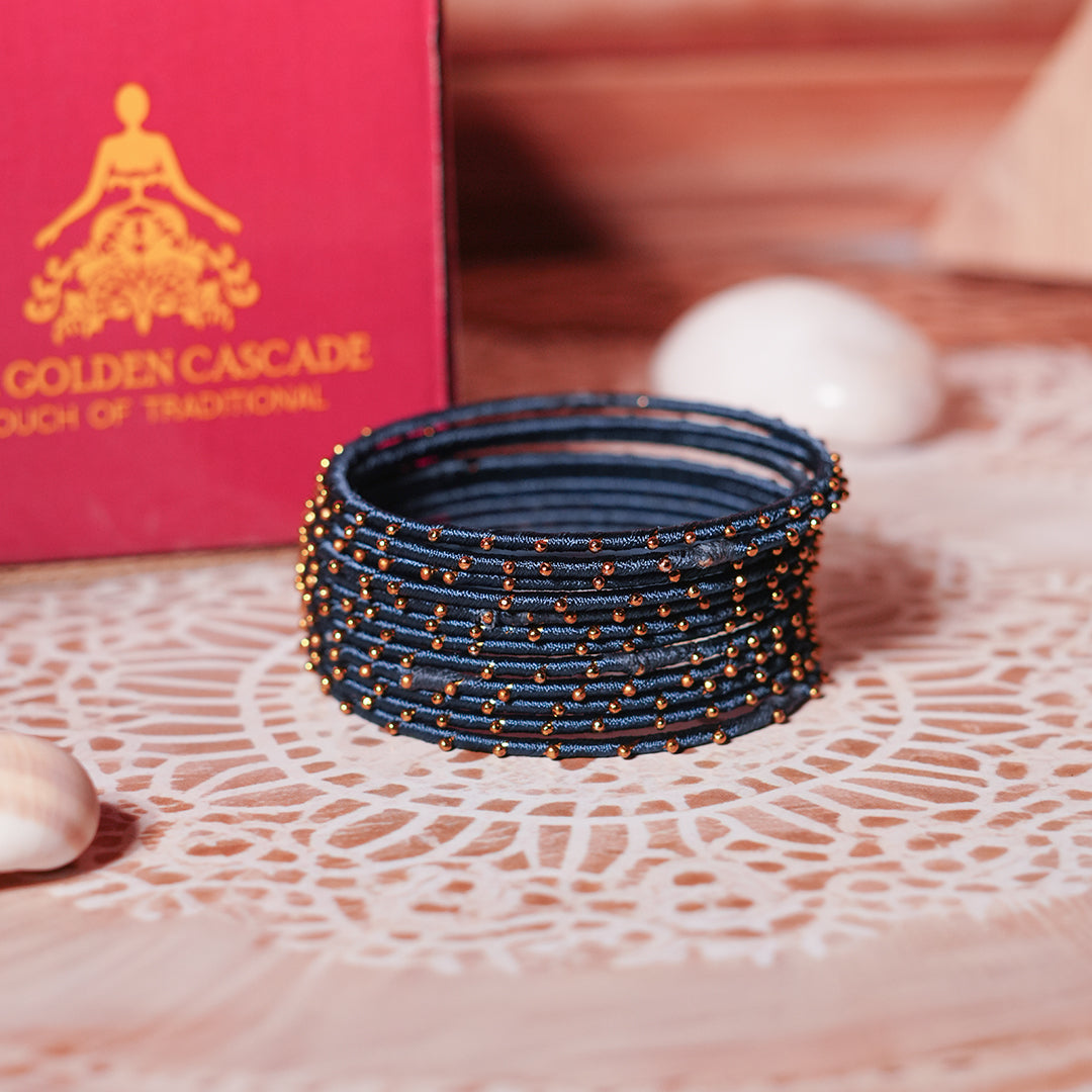 Black Blue Color Premium Silk Thread Bangle for Women & Girls (Pack of 12)