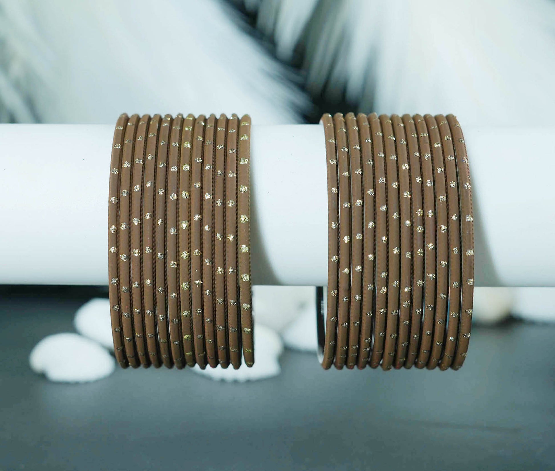 Brown Dot Design Matte Finish Metal Bangle for Women & Girls (Pack of 24)