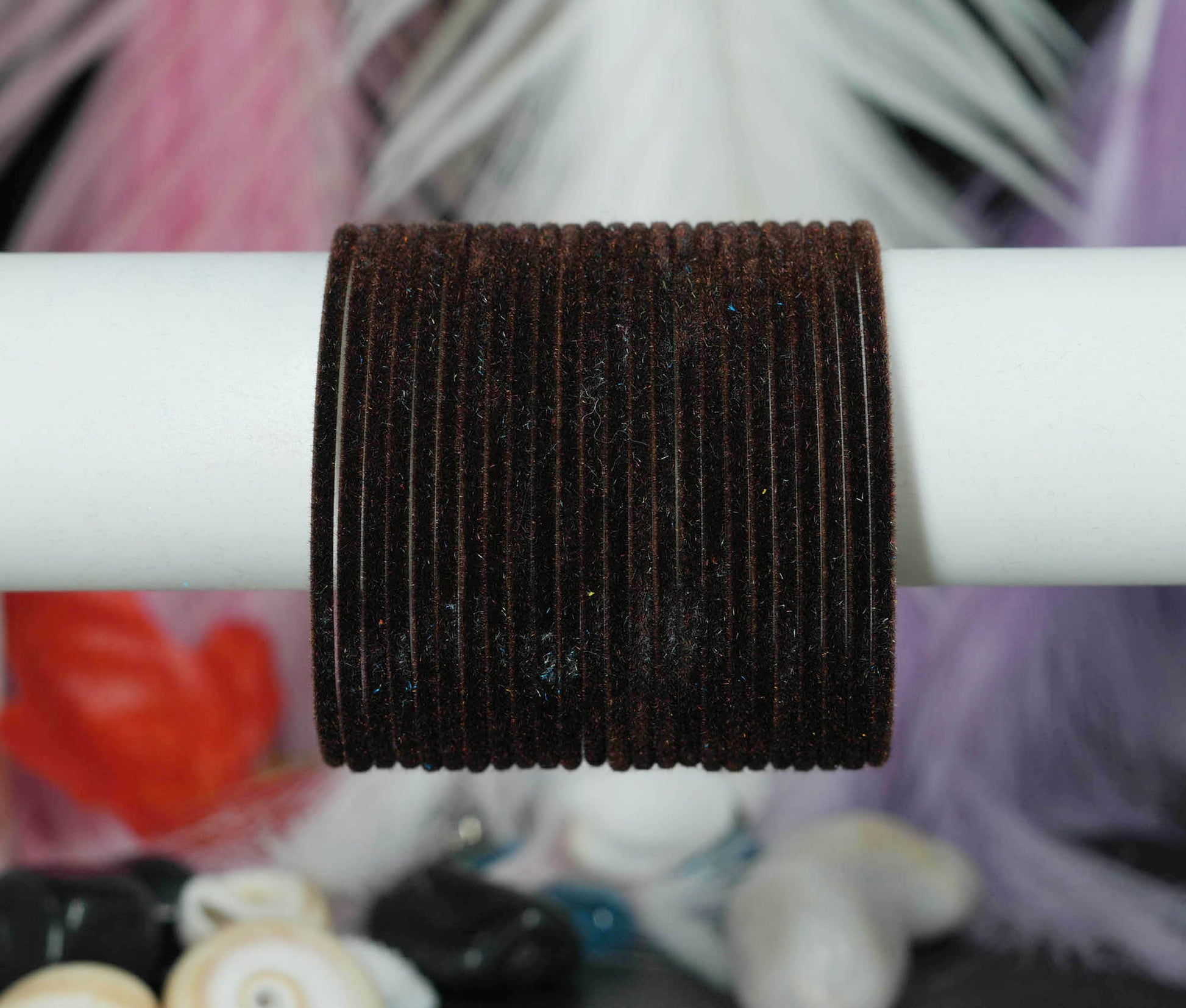 Brown Velvet Metal Bangles for Women & Girls (Pack of 24)