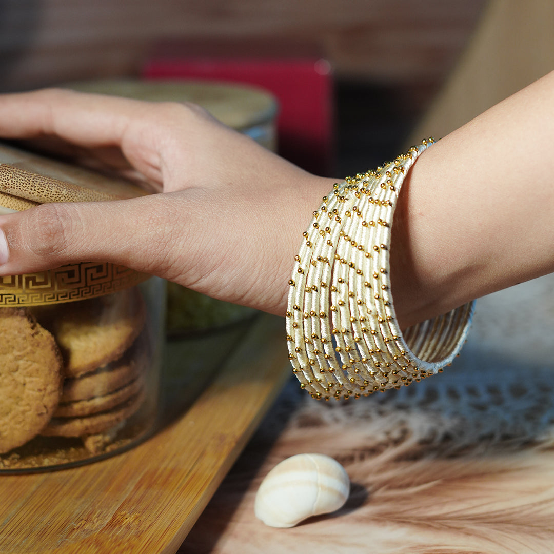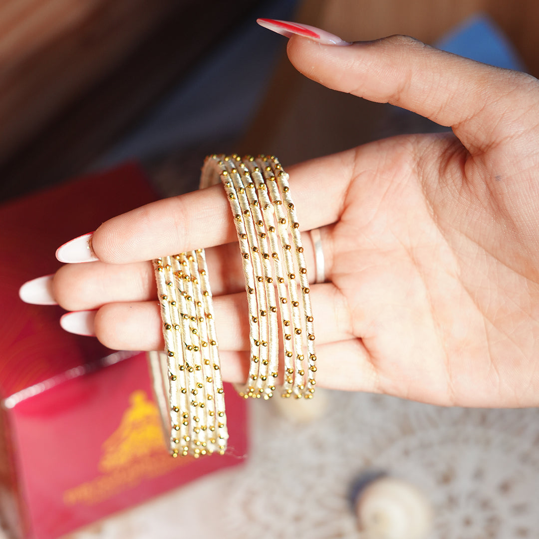 Cream Color Premium Silk Thread Bangle for Women & Girls (Pack of 12)