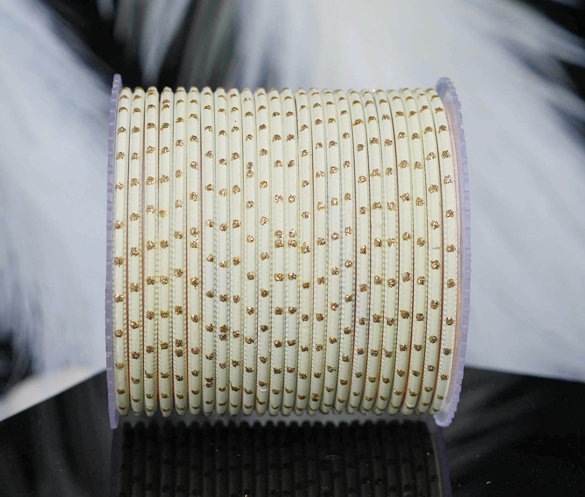 Cream Dot Design Matte Finish Metal Bangle for Women & Girls (Pack of 24)