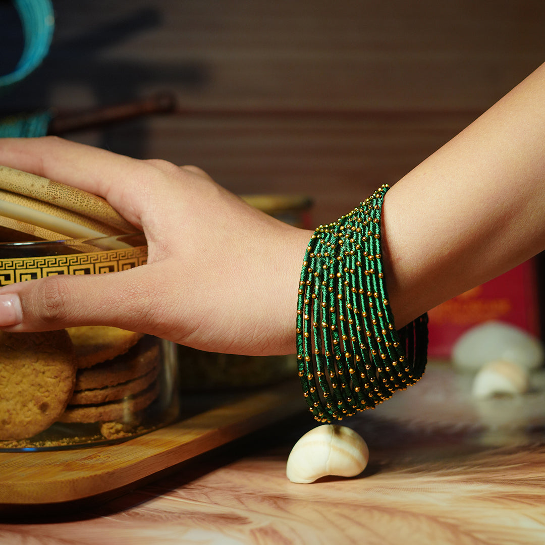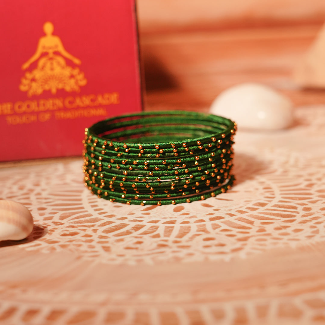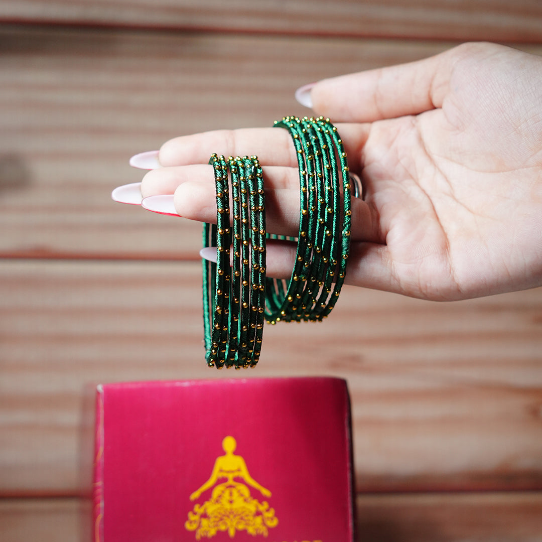 Dark Green Color Premium Silk Thread Bangle for Women & Girls (Pack of 12)