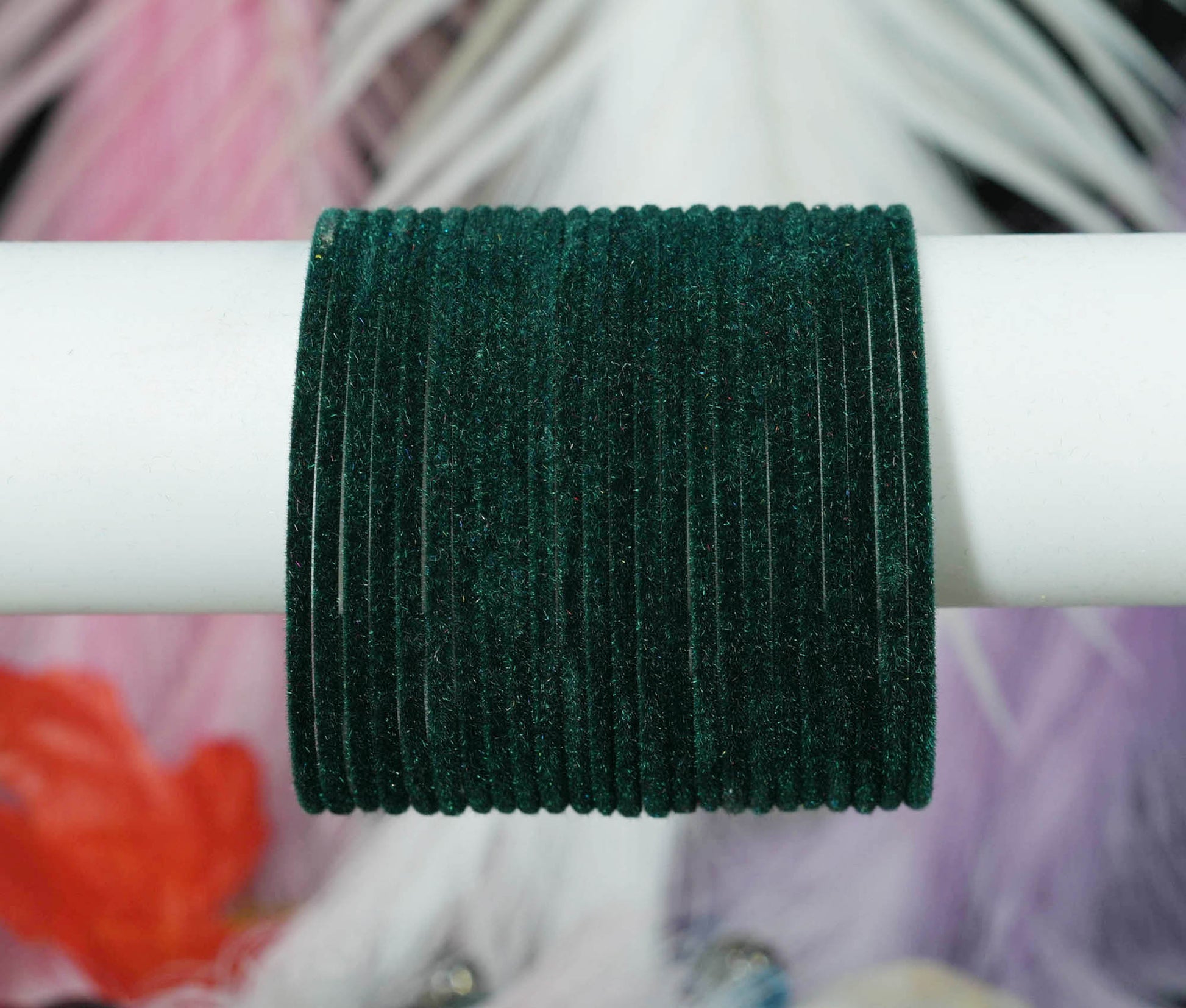 Dark Green Velvet Metal Bangles for Women & Girls (Pack of 24)