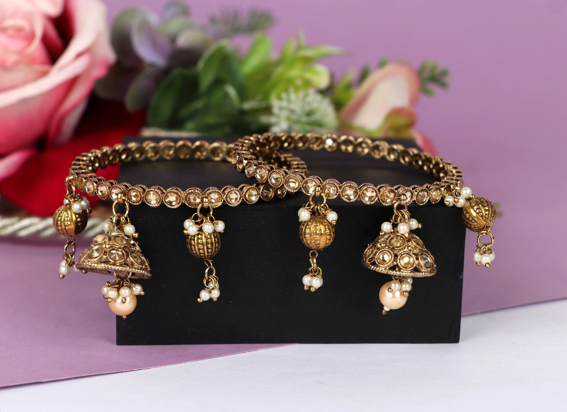 Attractive Latkan Style: Designed with elegant hanging latkan charms that enhance the beauty of the kada and make it look more festive.