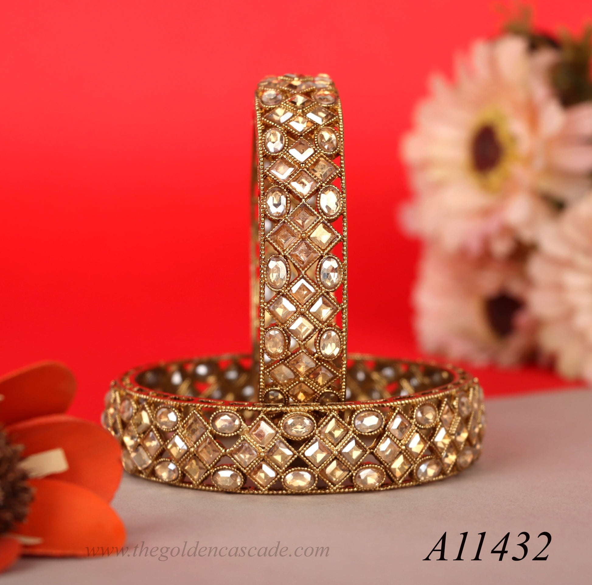 Elegant Gold Plated Ethnic Stone-Studded Kada for Women (Pack of 2)
