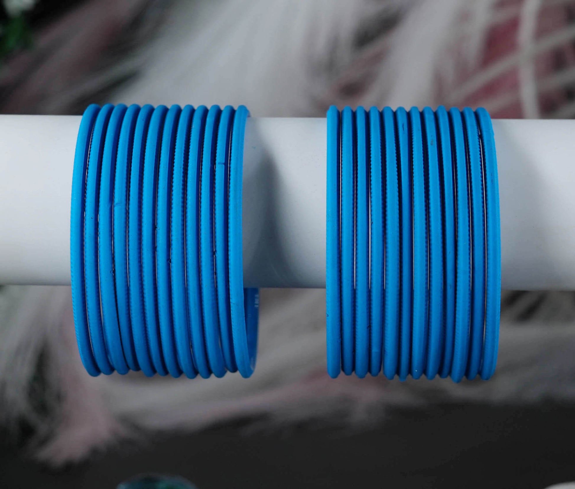 Firozi Color Plain Matte Metal Bangles for Women & Girls (Pack of 24)