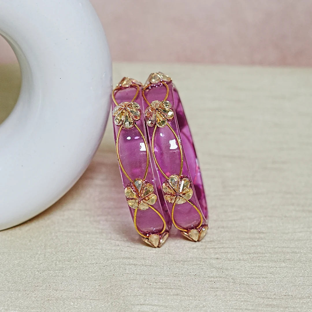 Flower Design Kundan Work Glass Kada Bangle for Women & Girls (Pack of 2)