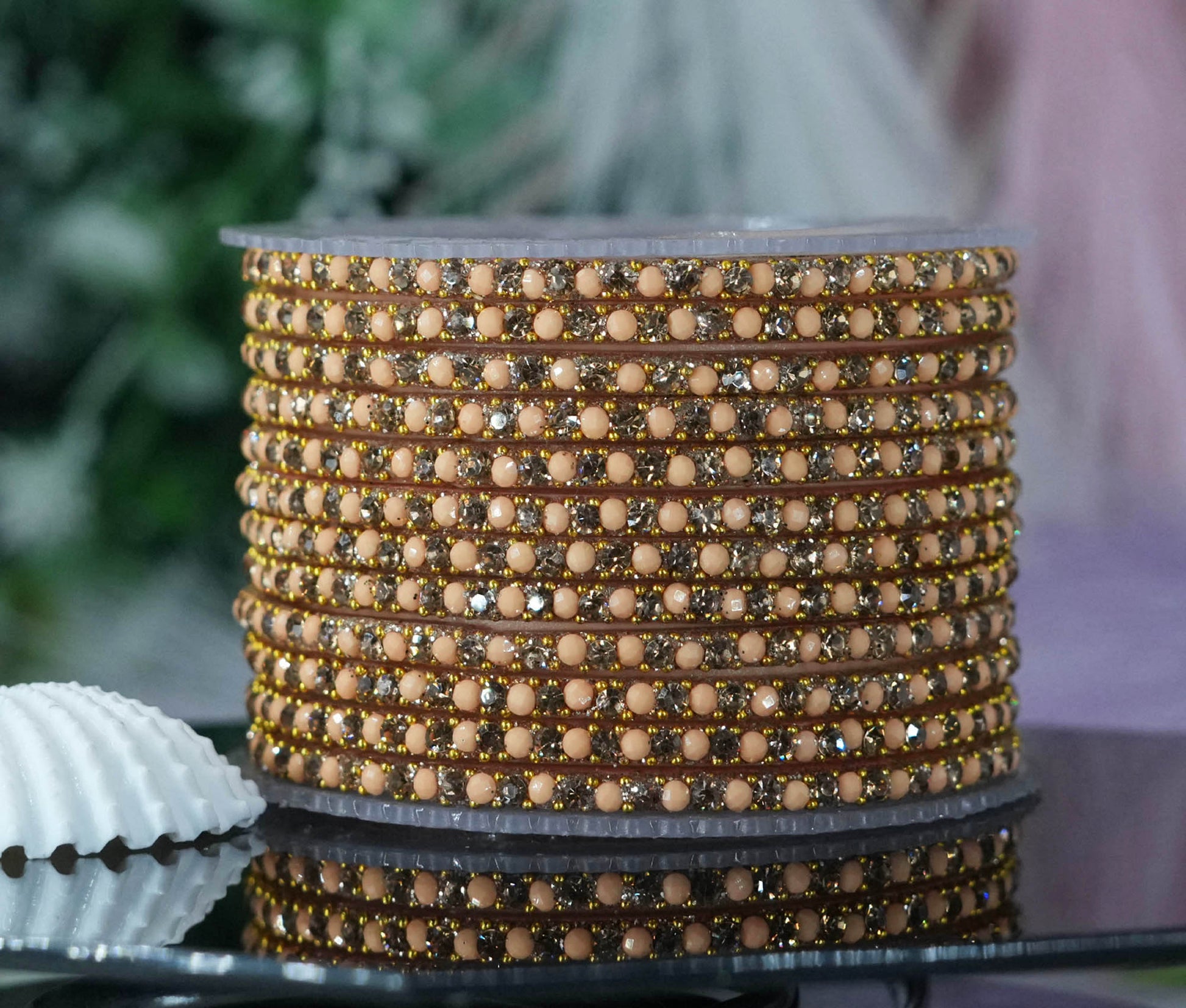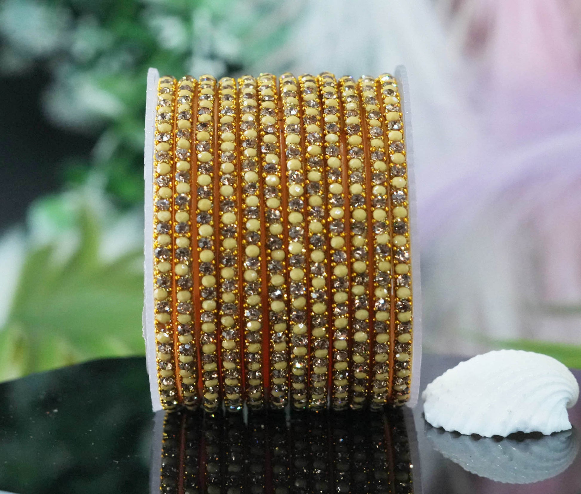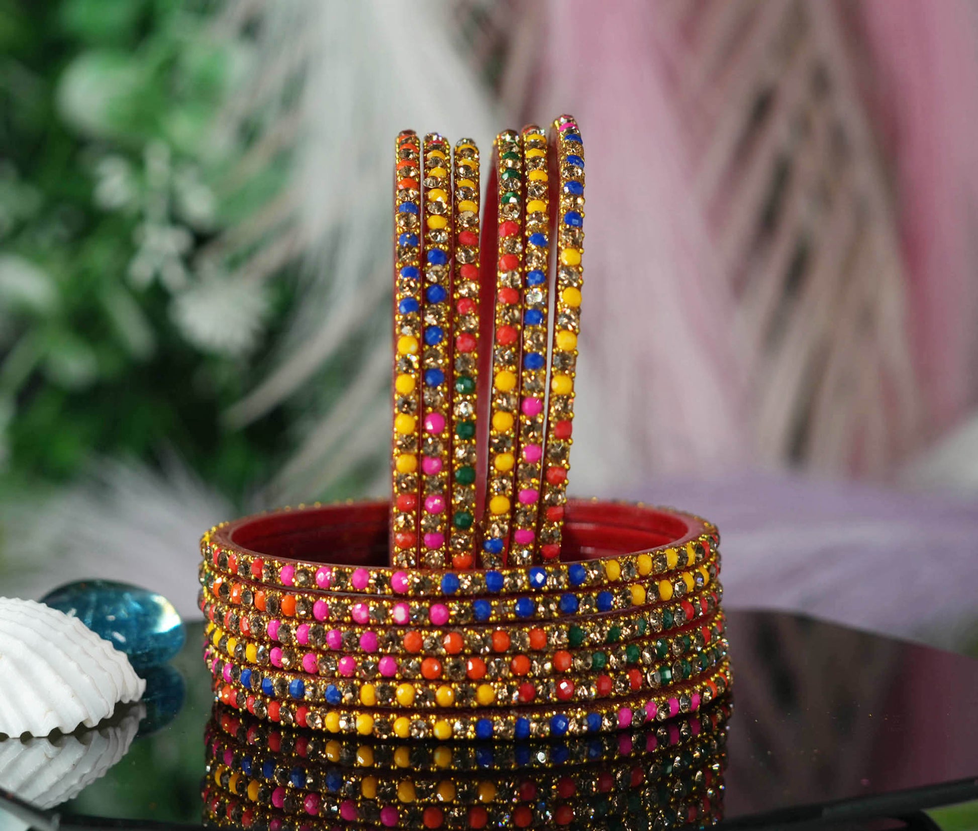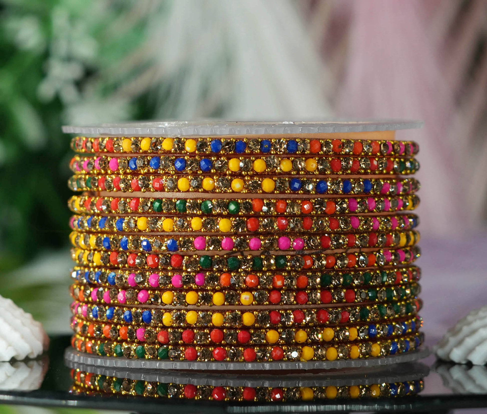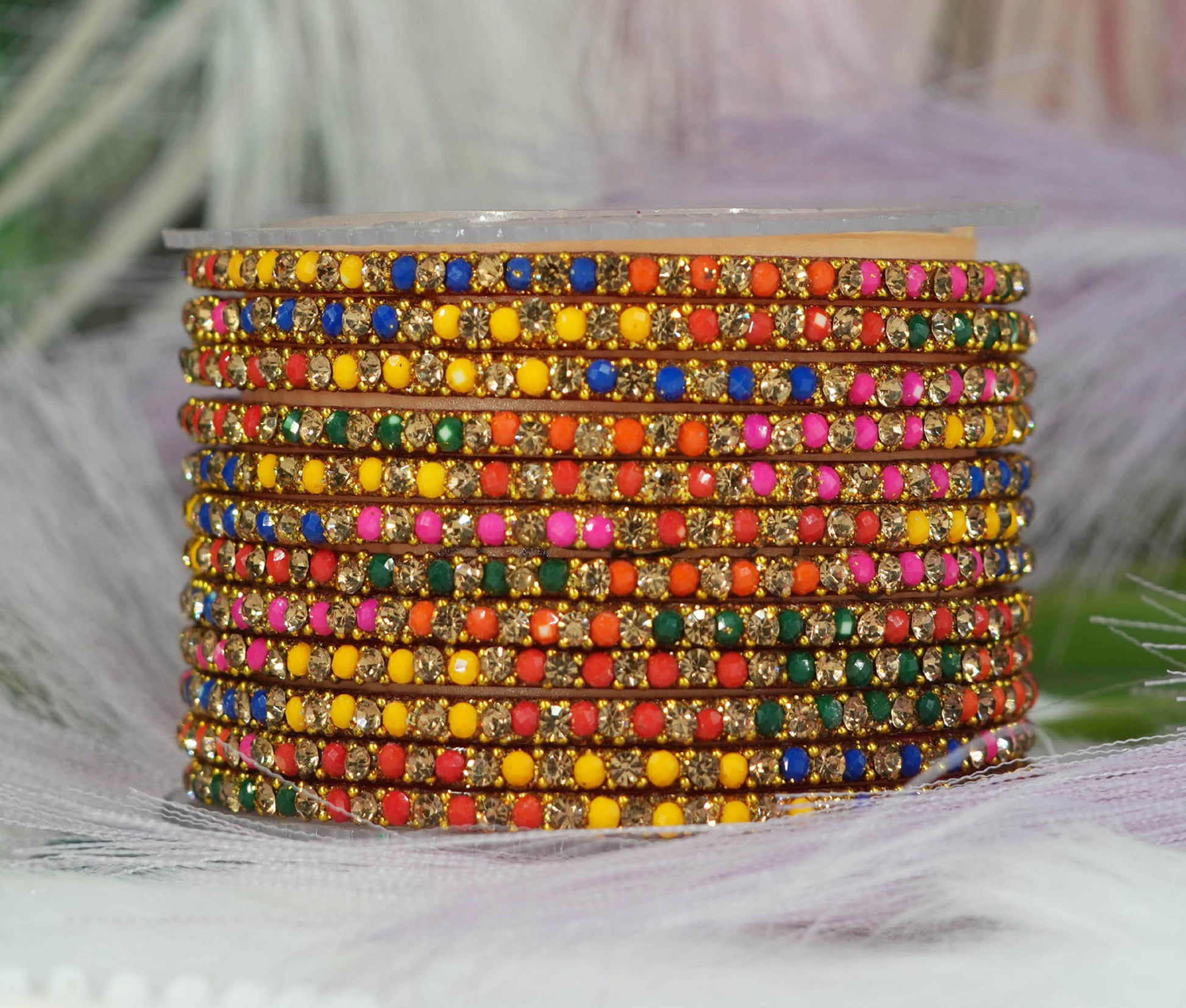 Glass Bangles with Beads Studded for Women & Girls | Multiple Color Chudiyan (Pack of 12 Bangles)