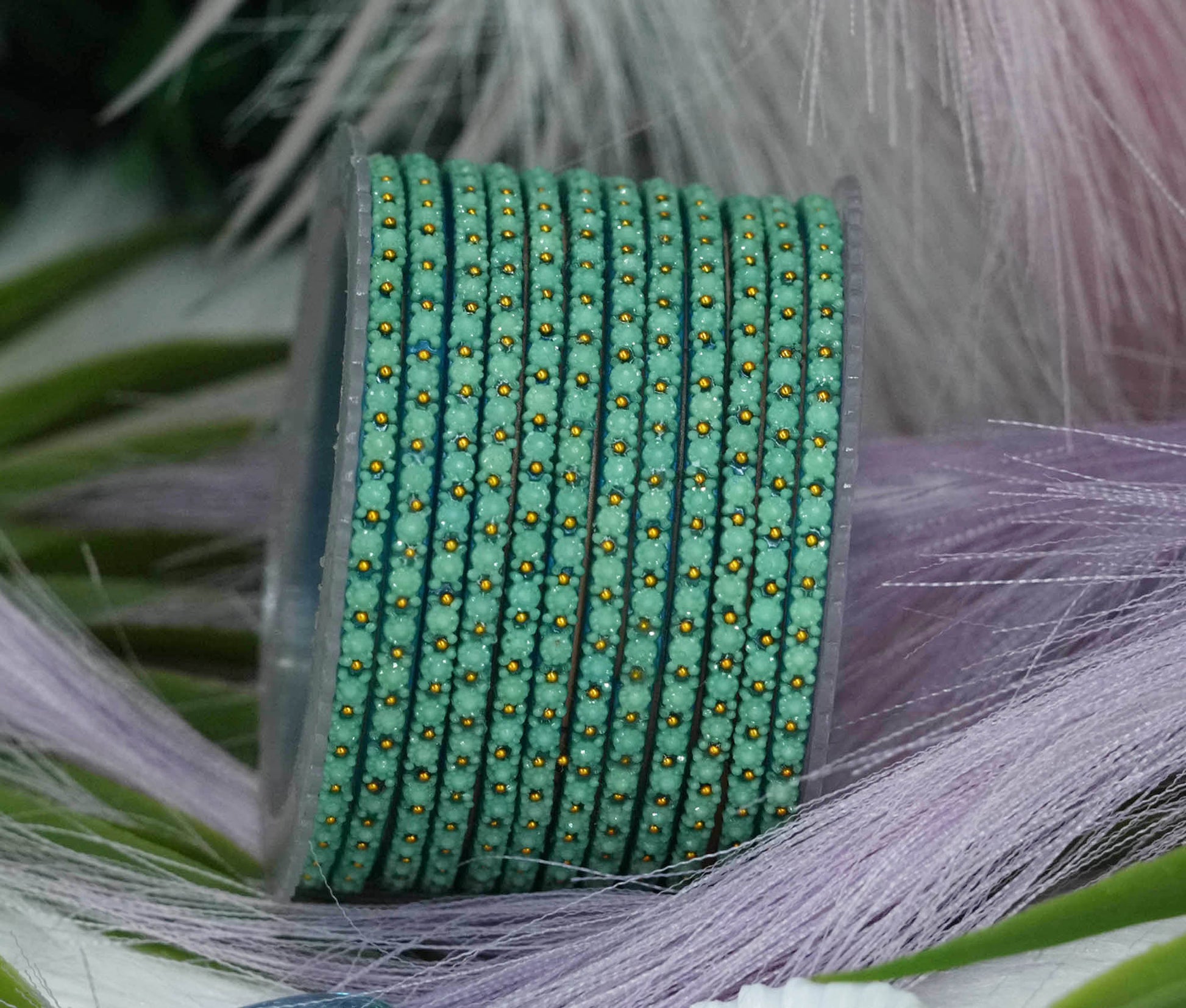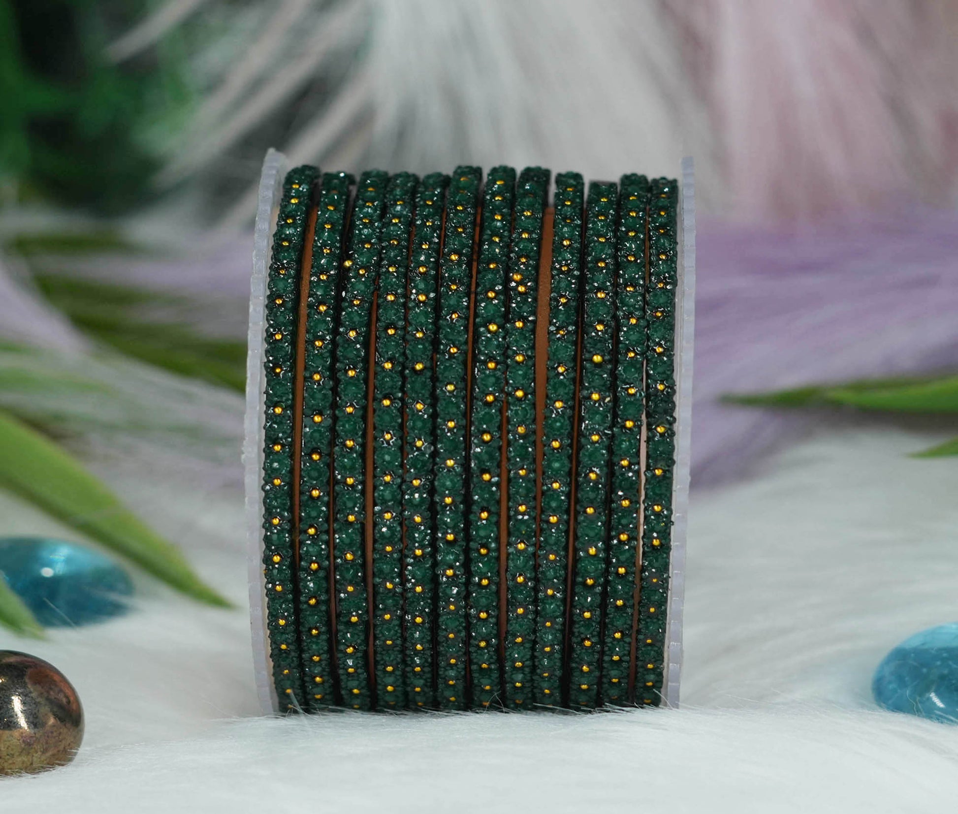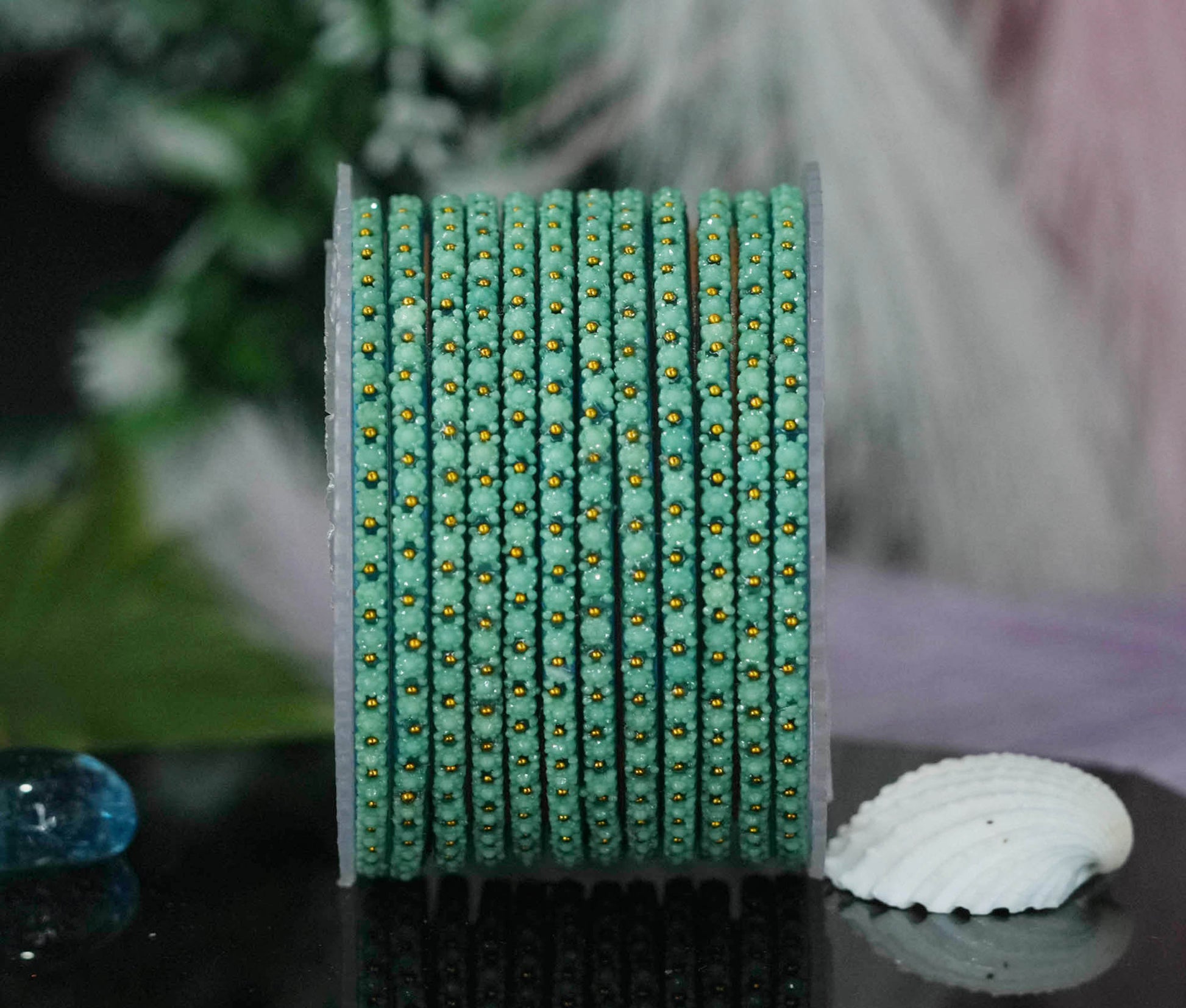 Glass Bangle with Golden Ball Studded for Women & Girls (Pack of 12 Bangles)