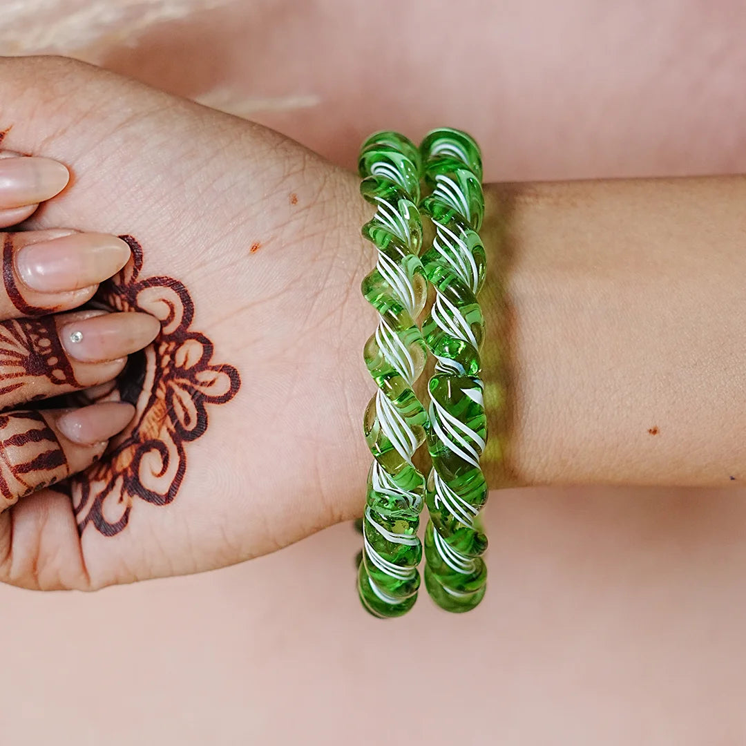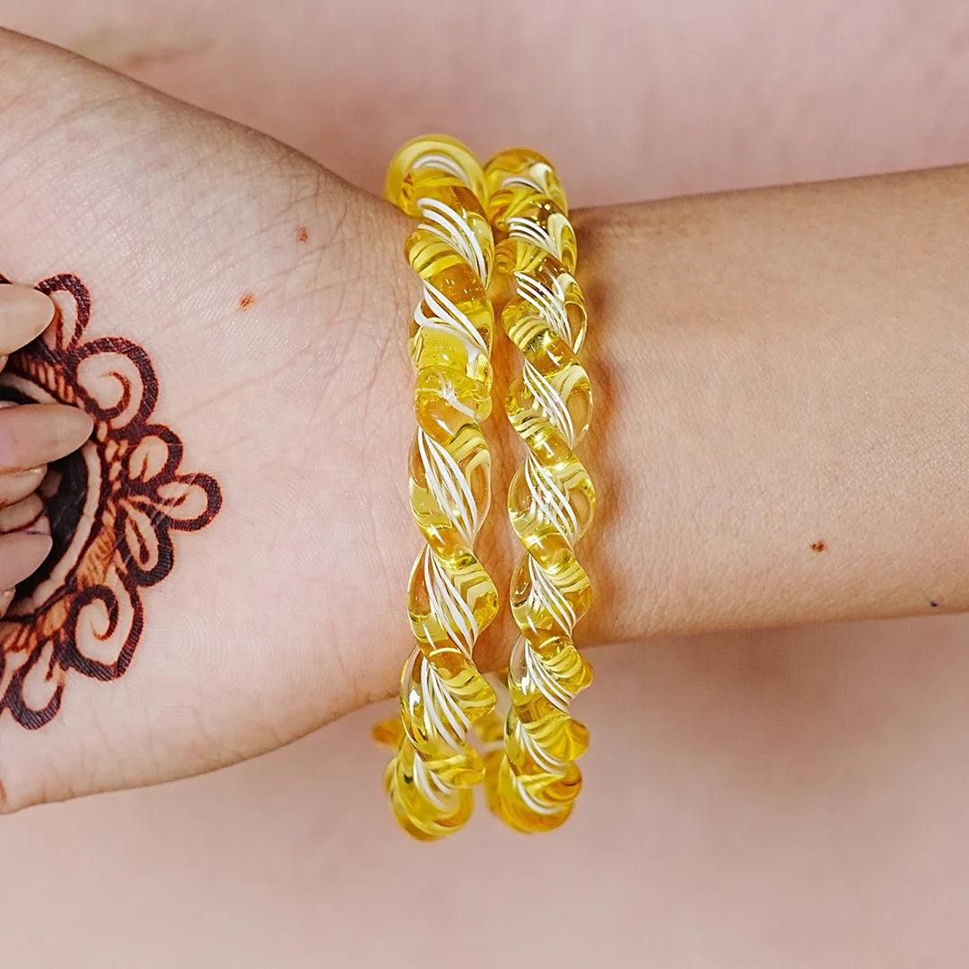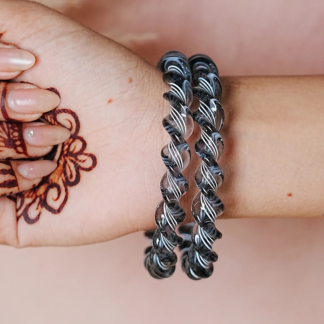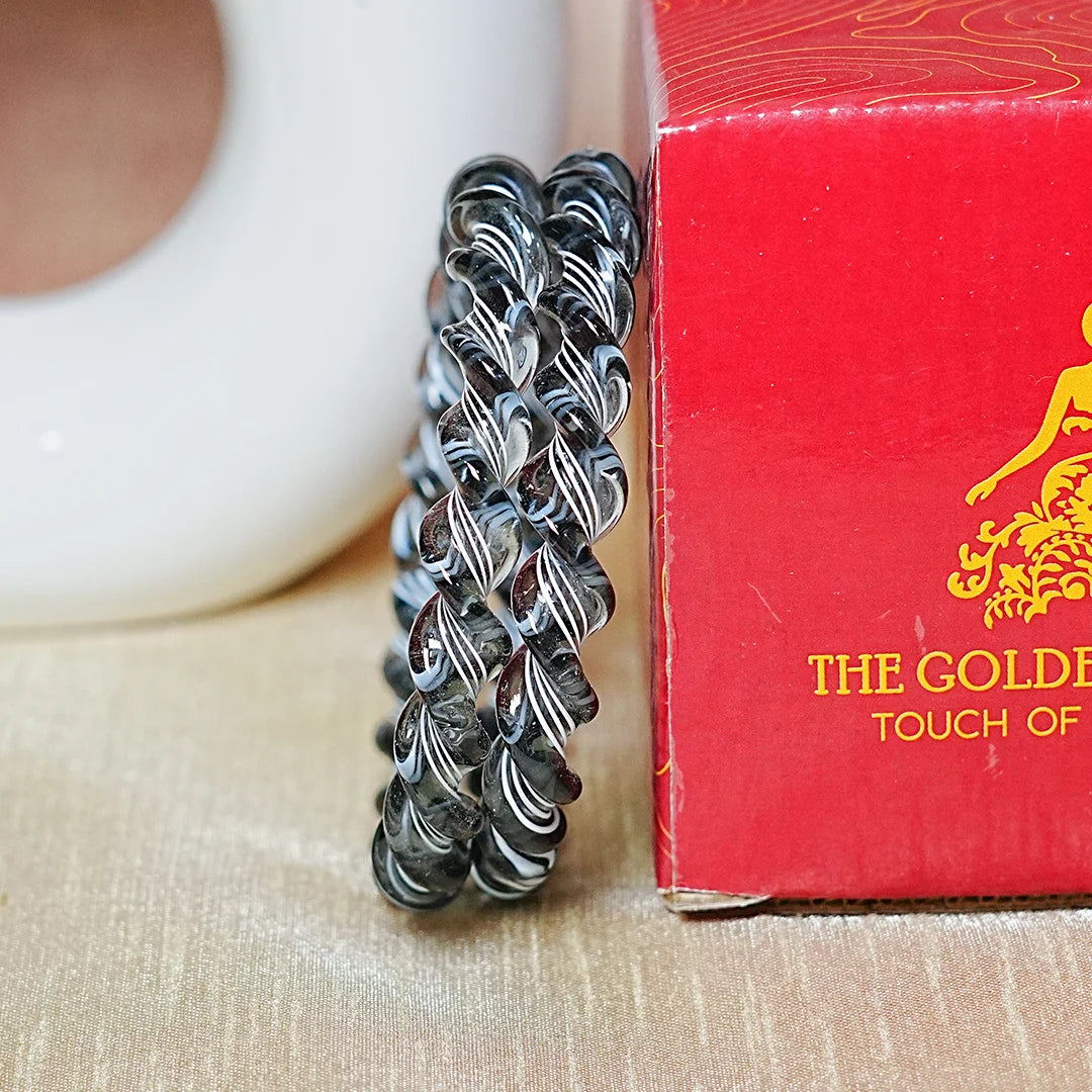 Glossy Finish Spiral Look Glass Kada Bangle for Women & Girls (Pack of 2)
